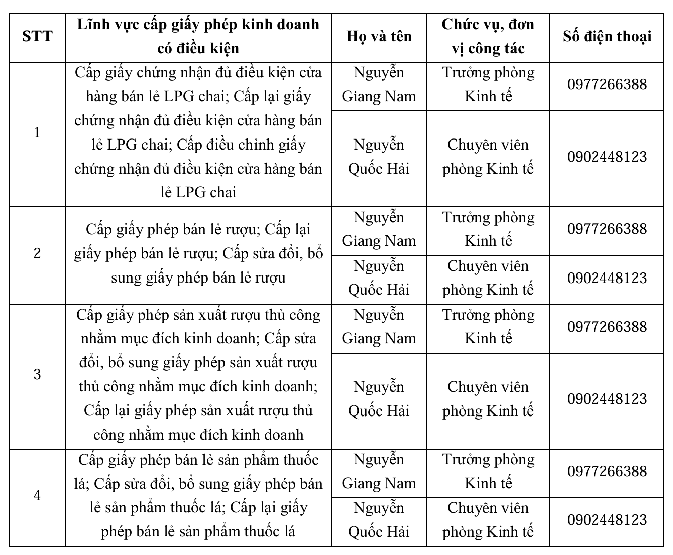 (Haiphong.gov.vn) - Danh sách thông tin lãnh đạo, công chức phụ trách lĩnh vực cấp phép kinh doanh có điều kiện xã An Thành: