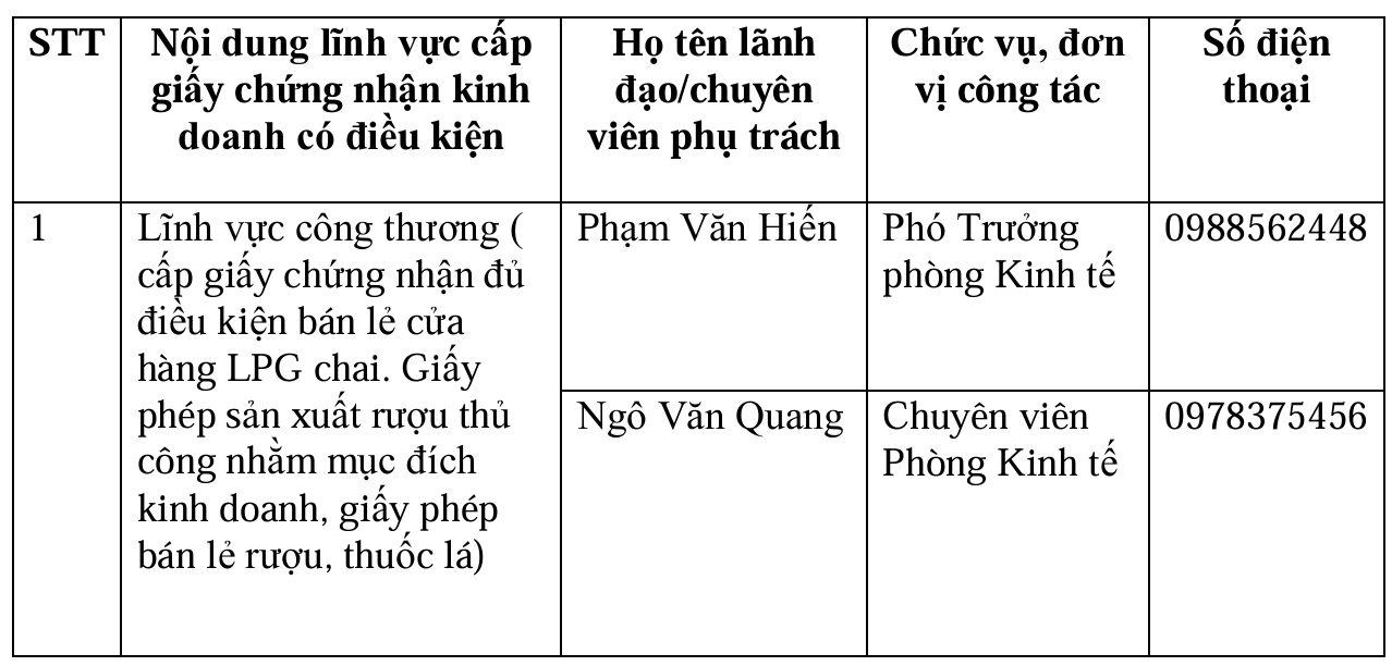 (Haiphong.gov.vn) - Danh sách thông tin lãnh đạo, công chức phụ trách lĩnh vực cấp phép kinh doanh có điều kiện xã Yết Kiêu:
