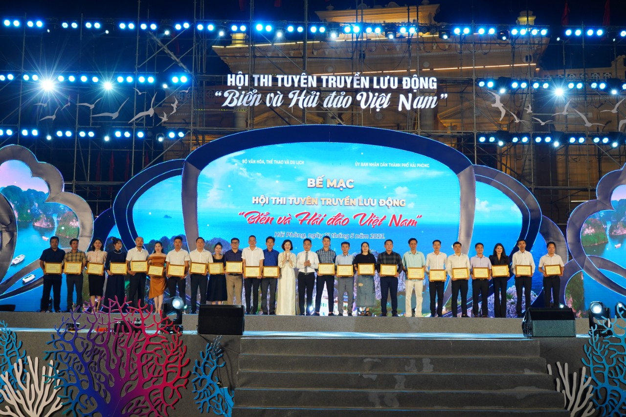 Trong đó, Trung tâm Thông tin, Triển lãm và Điện ảnh thành phố - đơn vị đại diện Hải Phòng tham gia Hội thi đạt Huy chương Vàng ở 2 phần thi trang trí và diễu hành xe tuyên truyền cổ động, trưng bày và thuyết minh triển lãm; cùng Huy chương Vàng với các tiết mục văn nghệ múa “Sự sống”, hát múa “Biển Tổ quốc tôi – Tổ quốc và người lính biển – Khát vọng biển”; Huy chương Bạc các tiết mục “Hải Phòng niềm kiêu hãnh” và “Ru em bằng tiếng sóng”.