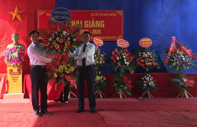 Đồng chí Lã Đình Kế tặng hoa chúc mừng tại Trung tâm GDNN&GDTX huyện Vĩnh Bảo