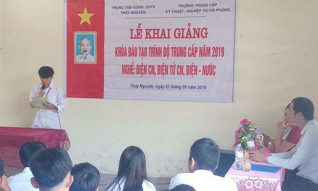 Trong không khí hân hoan chào đón Lễ Khai giảng năm học mới 2019 - 2020 diễn ra trên toàn quốc, tại Trung tâm Giáo dục nghề nghiệp & Giáo dục thường xuyên (GDNN&GDTX) huyện Vĩnh Bảo và Trung tâm GDNN&GDTX huyện Thủy Nguyên đã long trọng diễn ra Lễ Khai giảng các lớp đào tạo niên khóa 2019 - 2021 khóa 47 hệ Trung cấp.