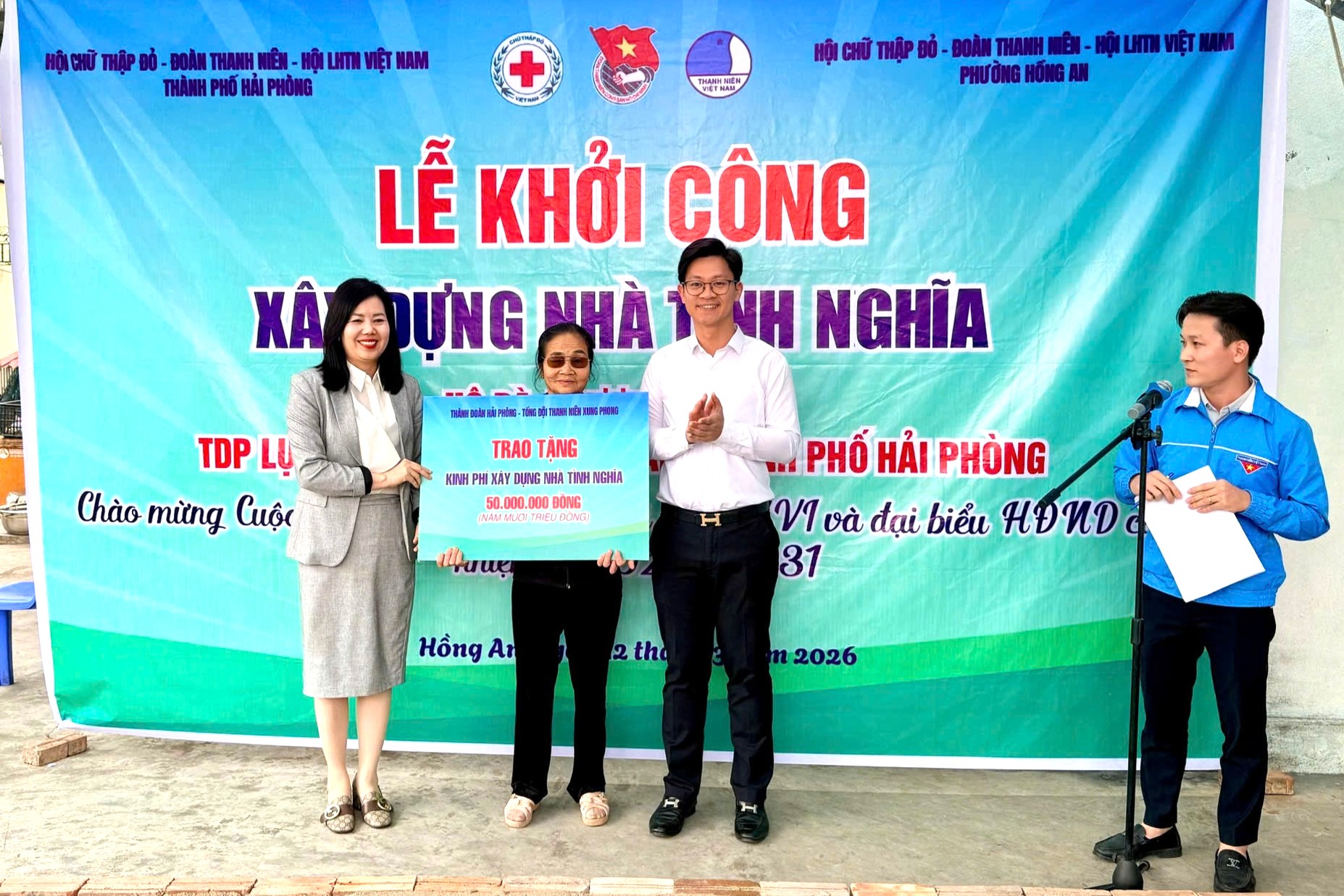 Dự lễ khởi công có các đồng chí: Bùi Mạnh Phúc, Chủ tịch Hội Chữ thập đỏ thành phố; Đỗ Đức Chính, Phó Bí thư Thành Đoàn Hải Phòng; lãnh đạo UBND, HĐND, Ủy ban MTTQ Việt Nam phường Hồng An; Thường trực Hội Chữ thập đỏ phường Hồng An; cùng gia đình, người thân bà Trương Thị Hải.
