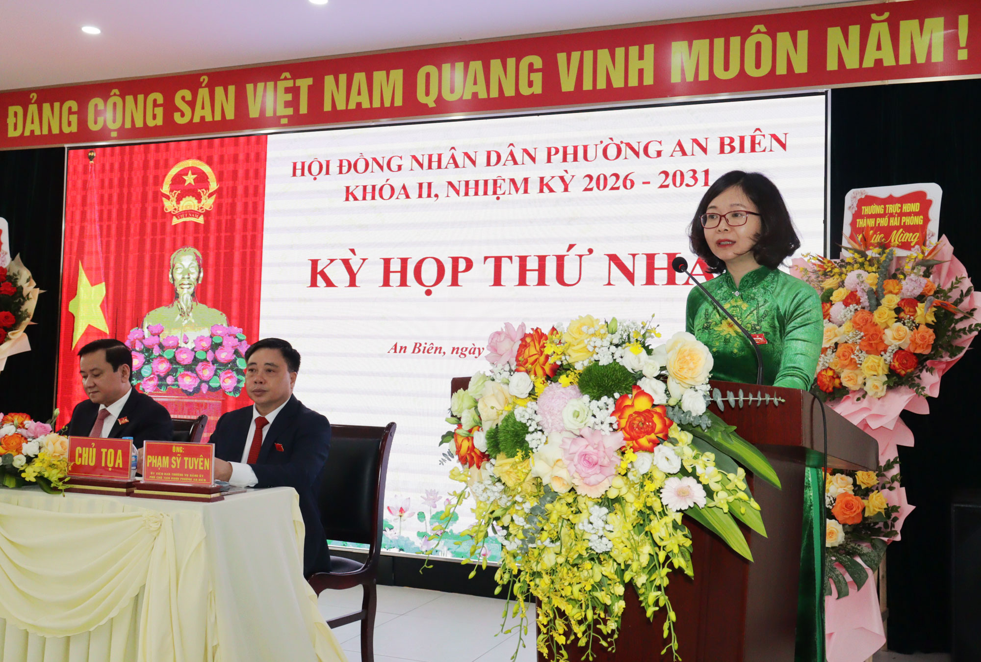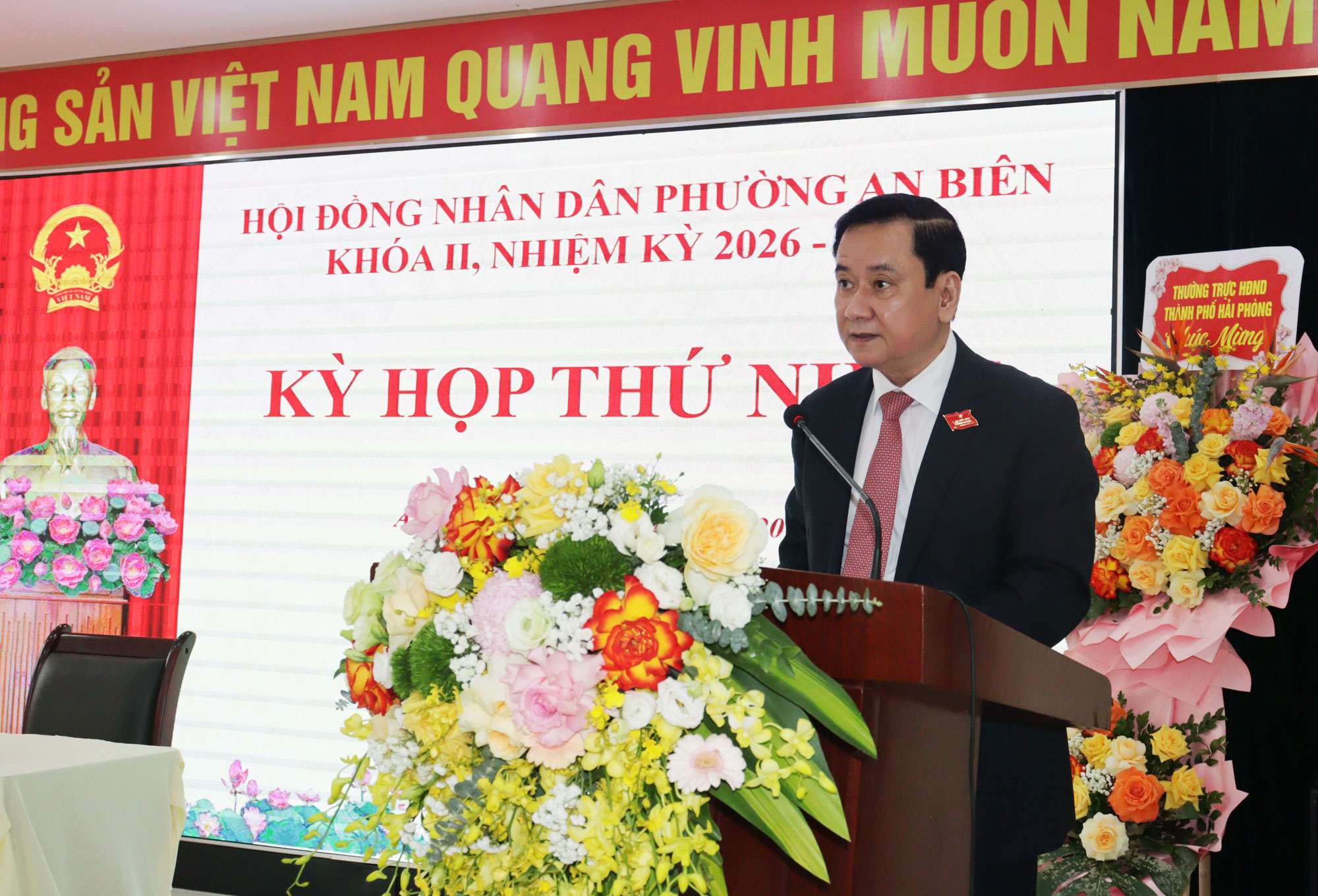 (Haiphong.gov.vn) - Sáng 28/3, HĐND phường An Biên khóa II, nhiệm kỳ 2026 - 2031 tổ chức Kỳ họp thứ Nhất bầu các chức danh lãnh đạo chủ chốt của HĐND, UBND phường và thực hiện một số nội dung quan trọng khác theo luật định. Tới dự có đồng chí Phạm Quốc Ka, Ủy viên Thành ủy, Trưởng Ban Pháp chế HĐND thành phố.