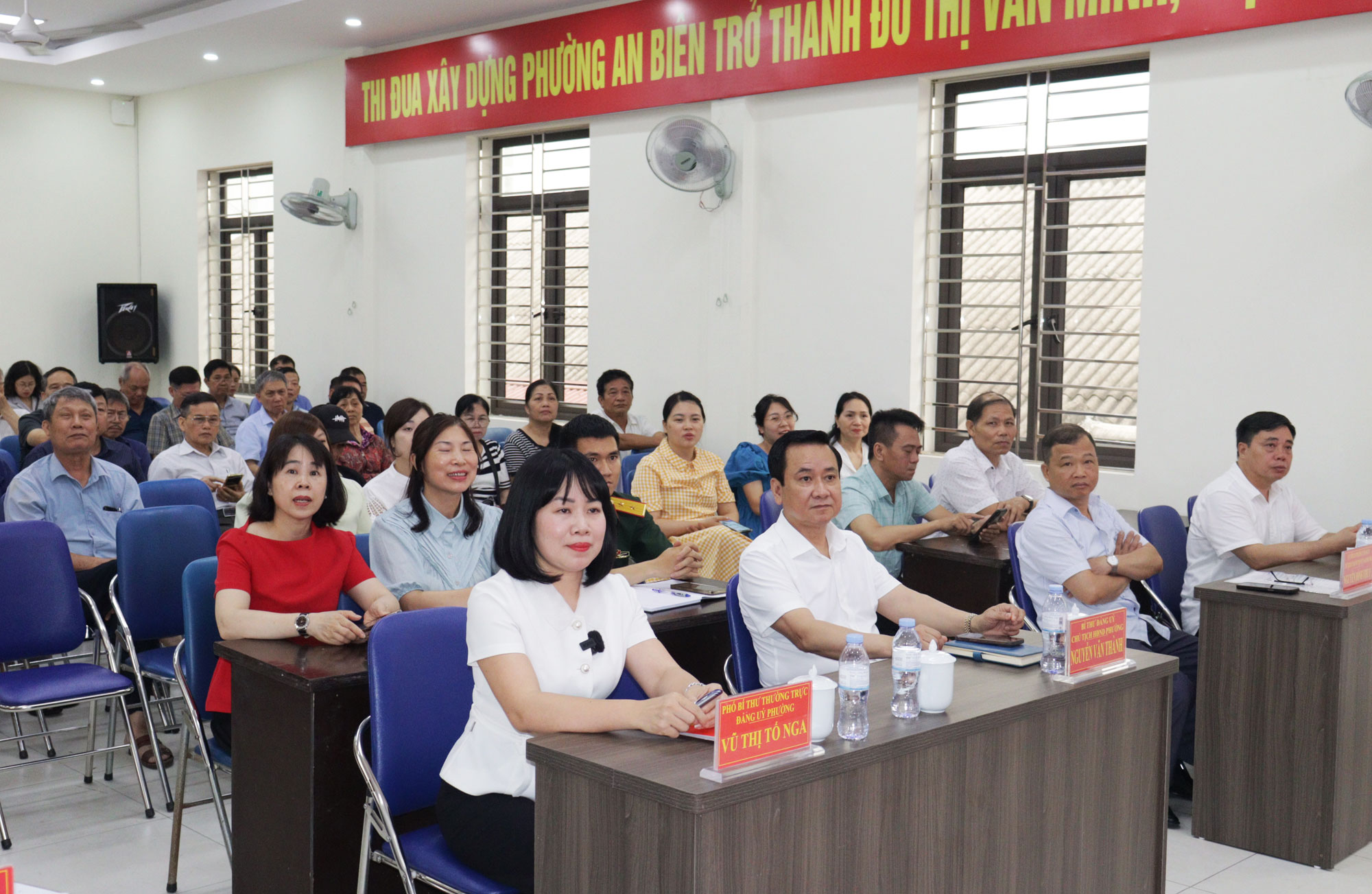Quang cảnh Hội nghị.Tại Hội nghị, đồng chí Vũ Thị Tố Nga, Phó Bí thư Thường trực Đảng ủy phường đã phát động Cuộc thi chính luận về bảo vệ nền tảng tư tưởng của Đảng, đây là cơ hội để mỗi cá nhân thể hiện quan điểm, trí tuệ và lòng tâm huyết của mình trong việc khẳng định giá trị khoa học, cách mạng của Chủ nghĩa Mác - Lênin, tư tưởng Hồ Chí Minh và đường lối của Đảng trong giai đoạn phát triển mới của đất nước; đấu tranh, phản bác các quan điểm sai trái, thông tin xấu độc trên mạng xã hội; lan tỏa những câu chuyện đẹp, những mô hình hay trong thực hiện chủ trương của Đảng, pháp luật của Nhà nước tại địa phương. Đây cũng là dịp để phát hiện, bồi dưỡng lực lượng nòng cốt tham gia công tác bảo vệ nền tảng tư tưởng của Đảng, đặc biệt là đội ngũ cán bộ tuyên giáo, dân vận, lực lượng vũ trang, đoàn viên, thanh niên và đội ngũ trí thức, giáo viên trên địa bàn phường.