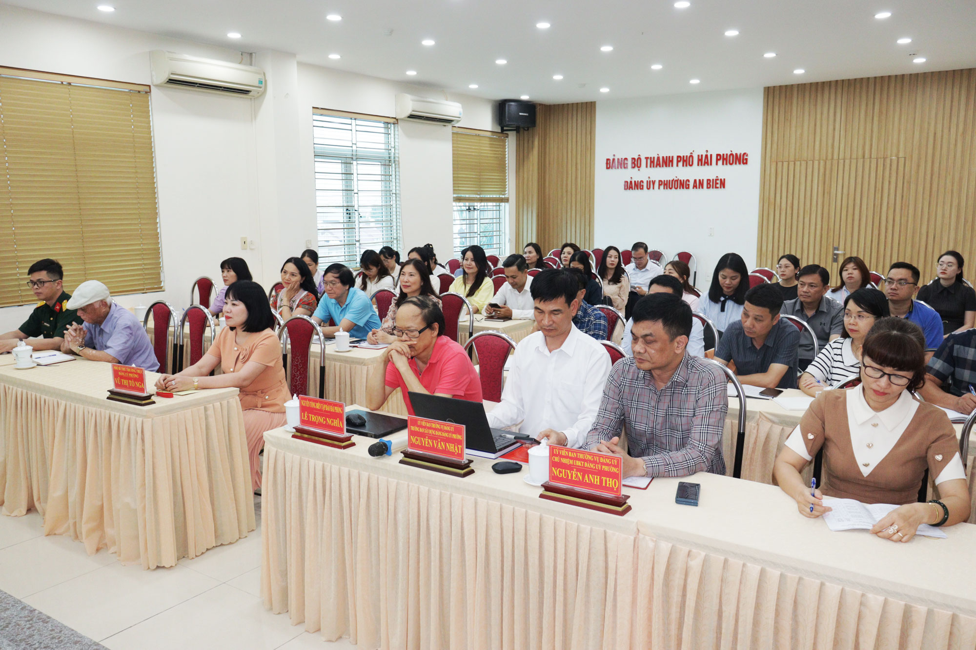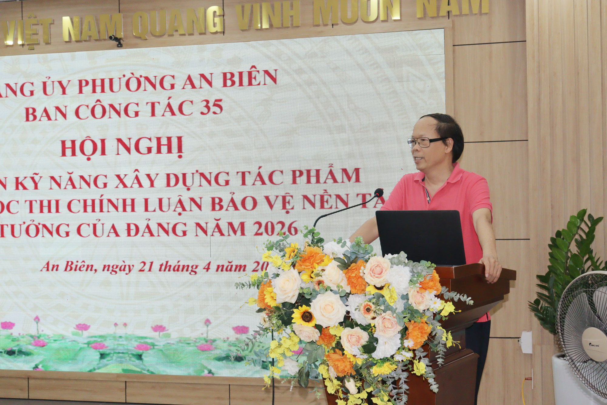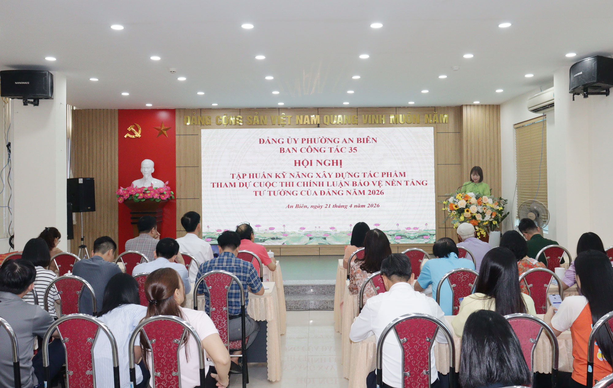 (Haiphong.gov.vn) - Chiều 21/4, Ban Công tác 35 Đảng ủy phường An Biên về tổ chức Hội nghị tập huấn kỹ năng xây dựng tác phẩm tham dự Cuộc thi chính luận bảo vệ nền tảng tư tưởng của Đảng năm 2026. Đồng chí Vũ Thị Tố Nga, Phó Bí thư Thường trực Đảng ủy phường chủ trì Hội nghị.