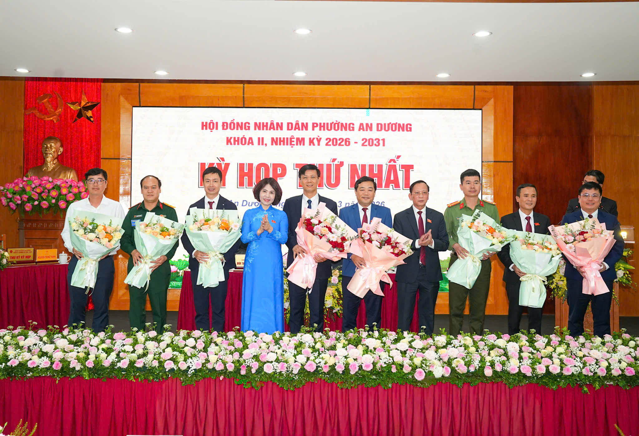 Các đồng chí trúng cử chức danh lãnh đạo UBND phường khóa II, nhiệm kỳ 2026 - 2031.Việc kiện toàn kịp thời các chức danh chủ chốt phường An Dương có ý nghĩa quan trọng nhằm tiếp tục nâng cao công tác quản lý, xây dựng bộ máy chính quyền địa phương hoạt động hiệu năng, hiệu lực, hiệu quả theo hướng đổi mới, thân thiện, đẩy mạnh cải cách hành chính, chuyển đổi số; phát triển kinh tế - xã hội gắn với bảo đảm quốc phòng - an ninh; chăm lo nâng cao đời sống vật chất và tinh thần của Nhân dân. Thực hiện mục tiêu Nghị quyết Đại hội Đảng bộ phường lần thứ nhất "Xây dựng phường An Dương cơ bản trở thành đô thị xanh, văn minh, hiện đại vào năm 2030".
