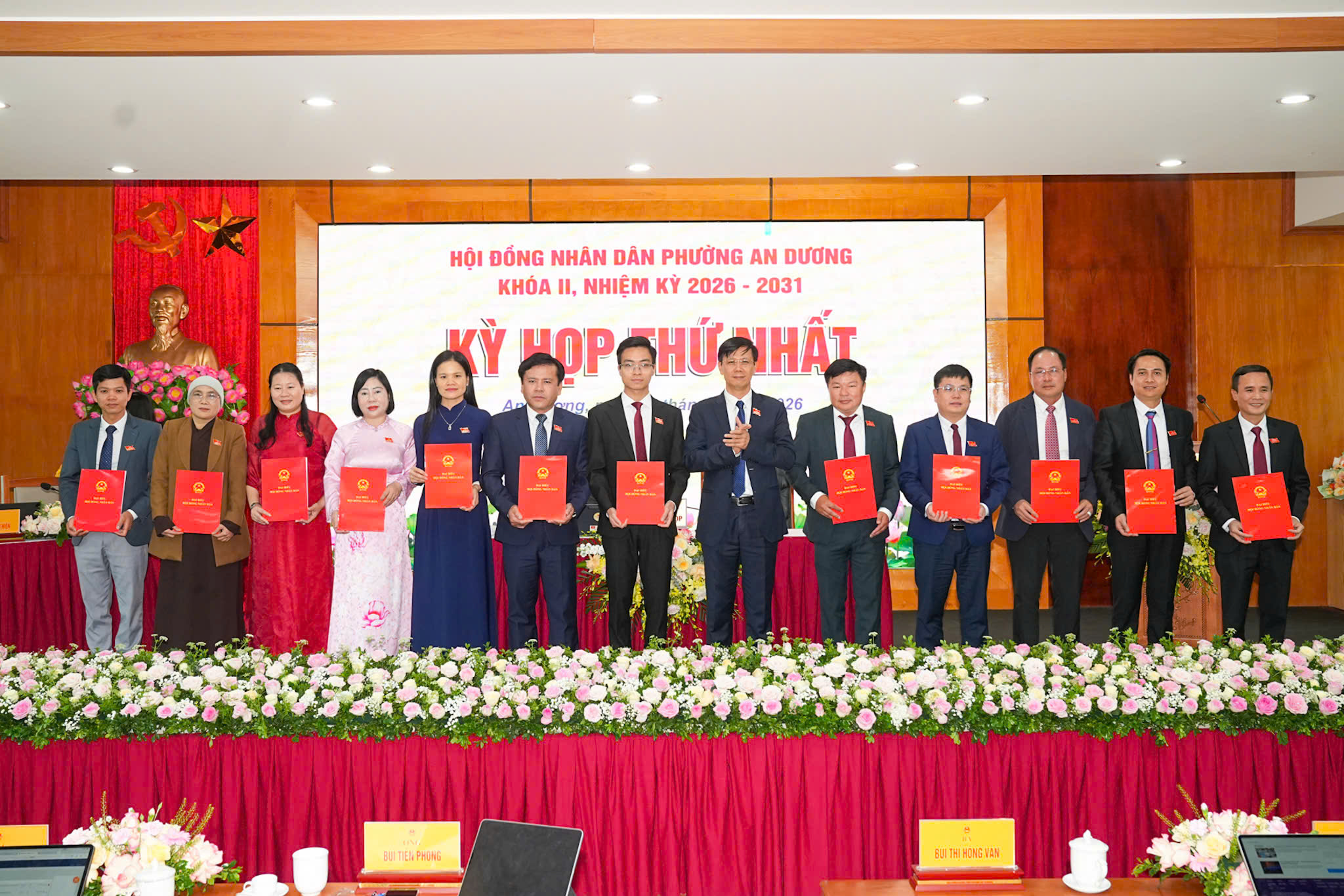 Các đồng chí trúng cử chức danh lãnh đạo HĐND phường khóa II, nhiệm kỳ 2026 - 2031.Với số phiếu đạt tỷ lệ 100%, đồng chí Bùi Thị Hồng Vân, Bí thư Đảng ủy trúng cử chức danh Chủ tịch HĐND phường; đồng chí Nguyễn Văn Phong trúng cử chức danh Phó Chủ tịch HĐND phường. Về phía lãnh đạo UBND phường, đồng chí Bùi Tiến Phong, Phó Bí thư Đảng ủy trúng cử chức danh Chủ tịch UBND phường; các đồng chí Nguyễn Trần Dương, Vũ Mạnh Hùng trúng cử chức danh Phó Chủ tịch UBND phường.
