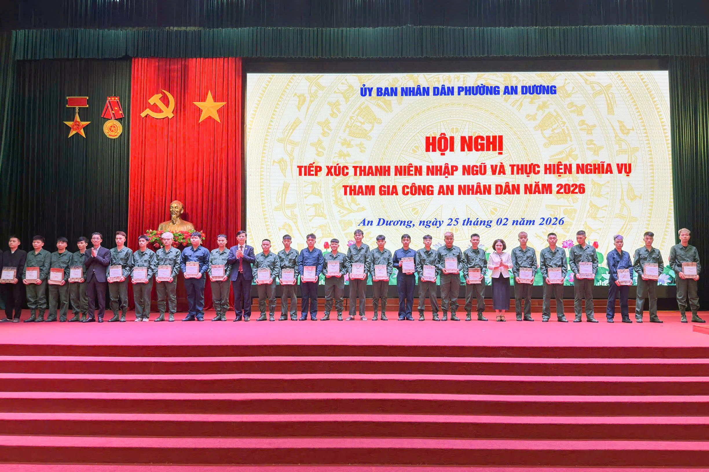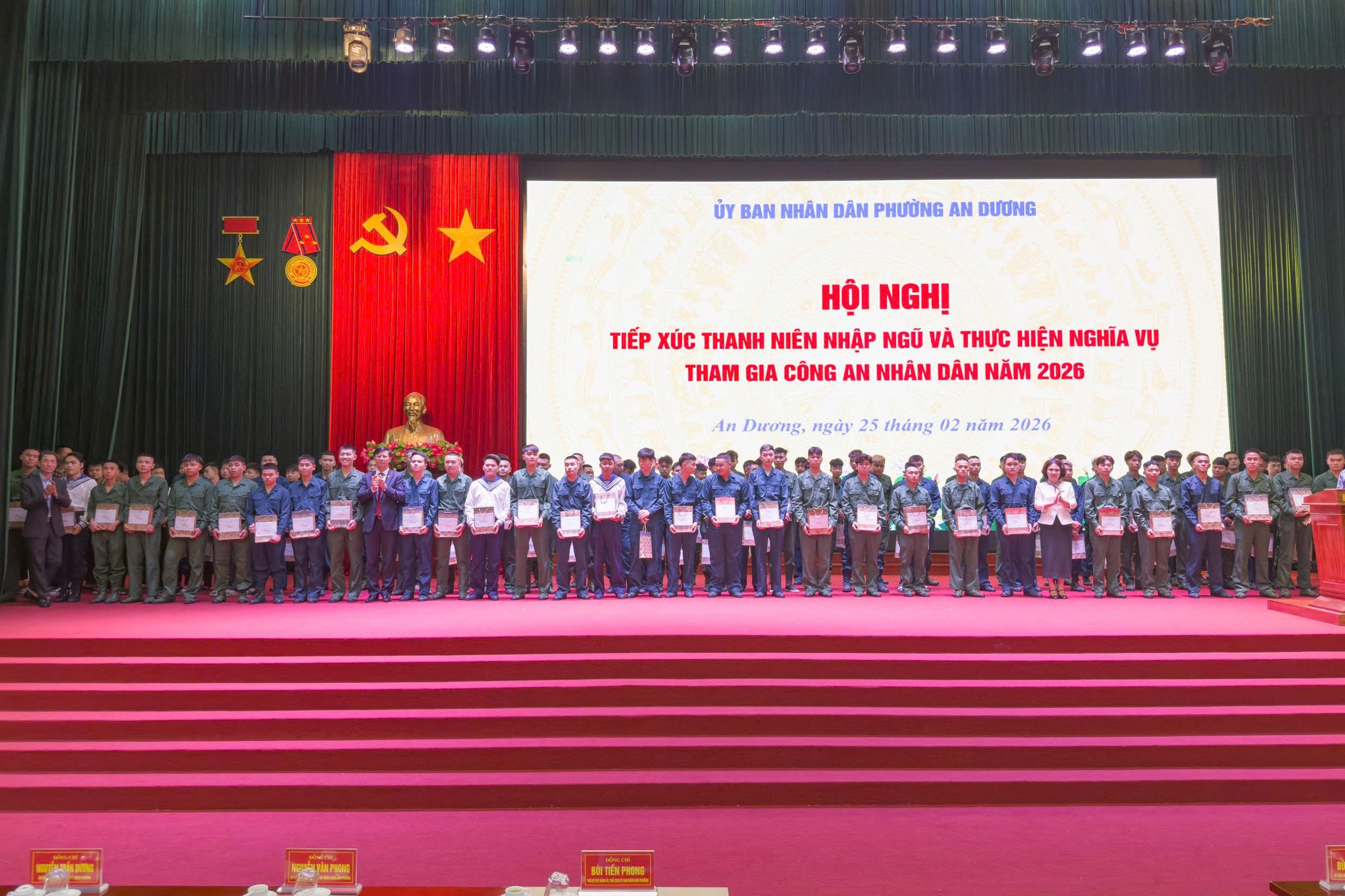 (Haiphong.gov.vn) - Chiều 25/2, UBND phường An Dương tổ chức Hội nghị tiếp xúc thanh niên lên đường nhập ngũ và thực hiện nghĩa vụ tham gia Công an nhân dân năm 2026.
