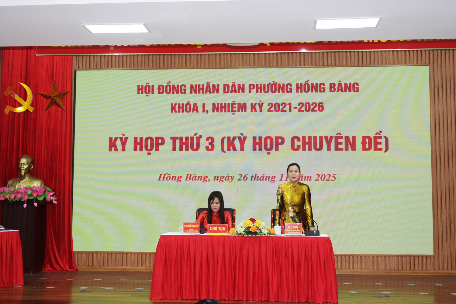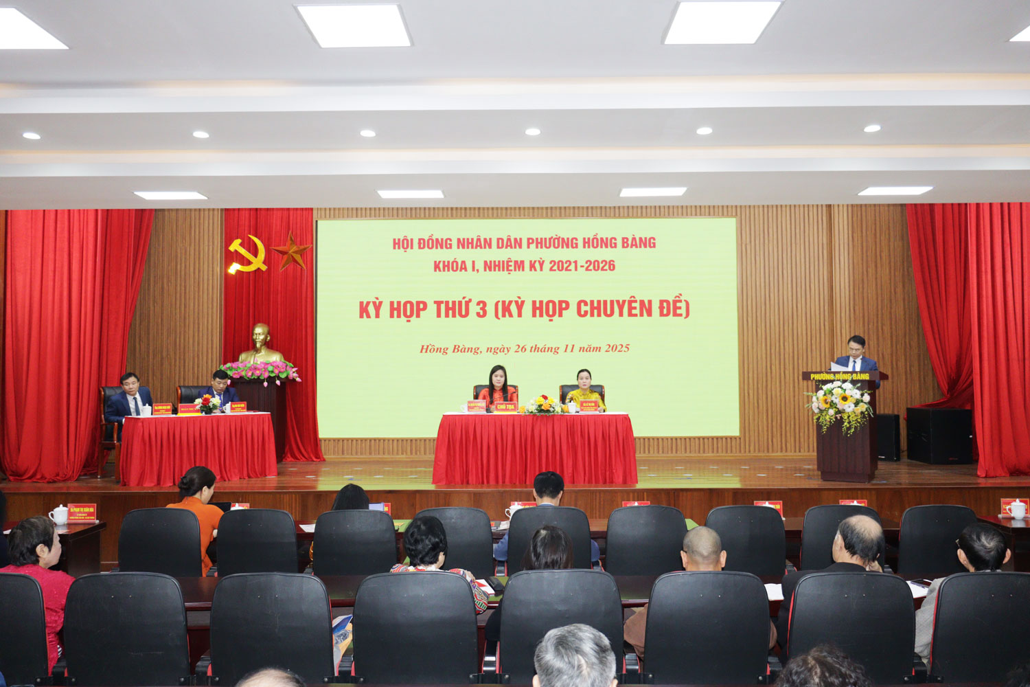 (Haiphong.gov.vn) - Sáng 26/11, HĐND phường Hồng Bàng khóa I, nhiệm kỳ 2021 - 2026 tổ chức Kỳ họp thứ 3 (chuyên đề) để xem xét, thảo luận và quyết nghị một số nội dung quan trọng, cấp bách liên quan đến việc điều chỉnh dự toán và phân bổ ngân sách phường năm 2025.