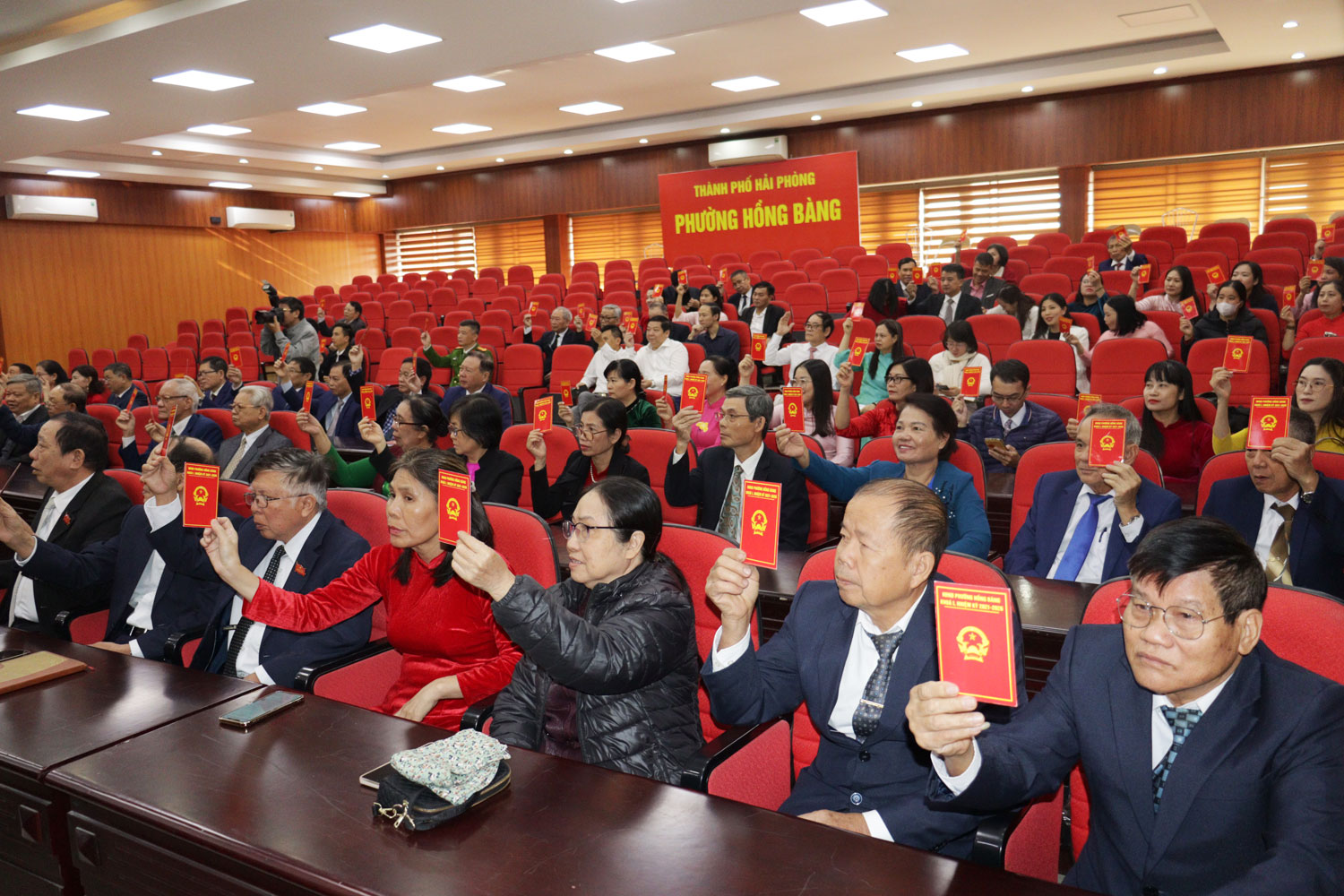 Các đại biểu biểu quyết tại Kỳ họp.Tại Kỳ họp, các đại biểu HĐND phường đã thảo luận, biểu quyết thông qua Nghị quyết về: Quyết định điều chỉnh dự toán và phân bổ ngân sách phường năm 2025; Quyết định điều chỉnh tạm giao biên chế trong cơ quan, đơn vị thuộc HĐND, UBND phường Hồng Bàng. Đồng thời biểu quyết cho thôi làm nhiệm vụ đại biểu HĐND phường khóa I, nhiệm kỳ 2021 - 2026 đối với 8 đại biểu do chuyển công tác và nghỉ hưu theo chế độ.