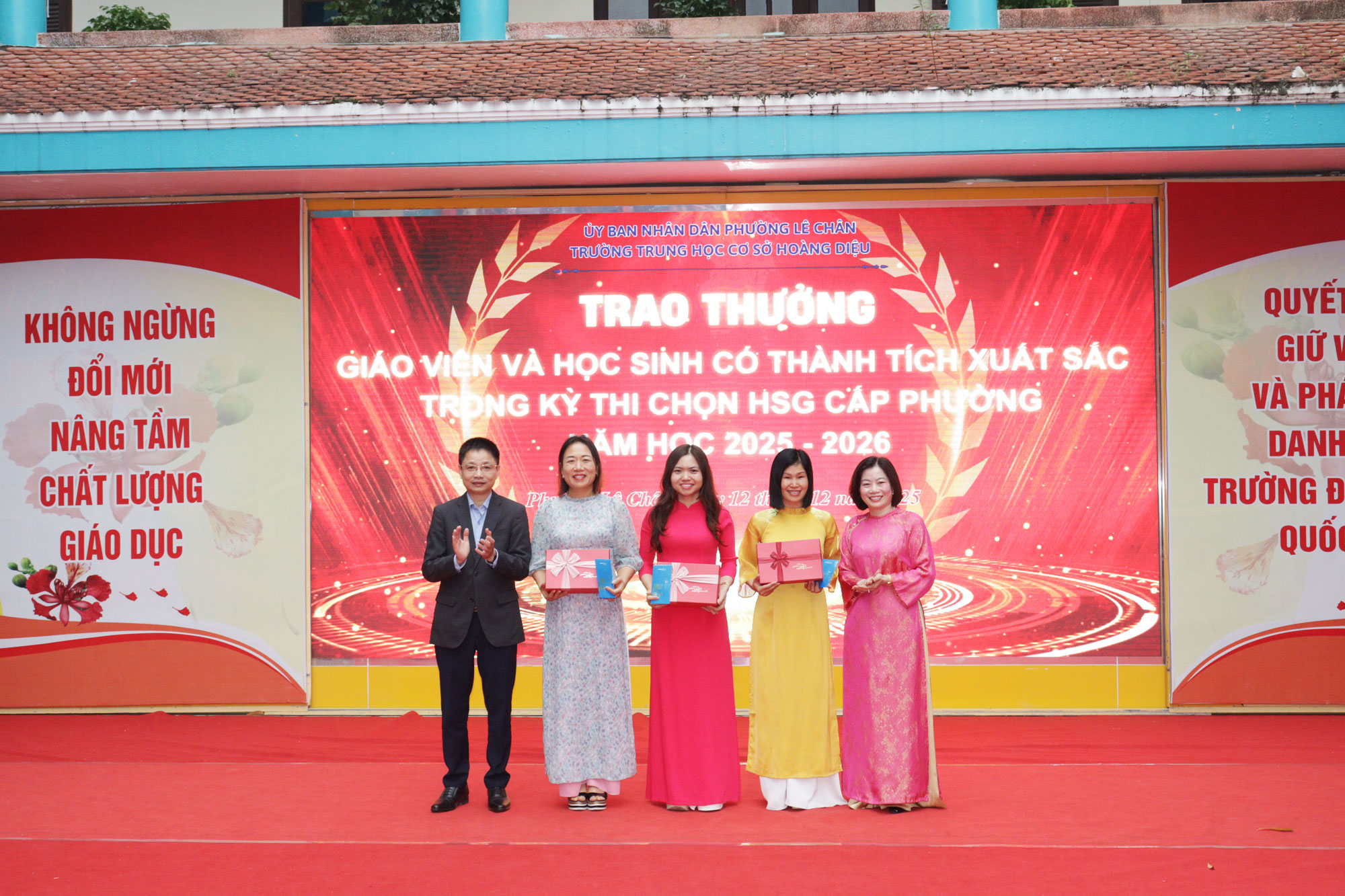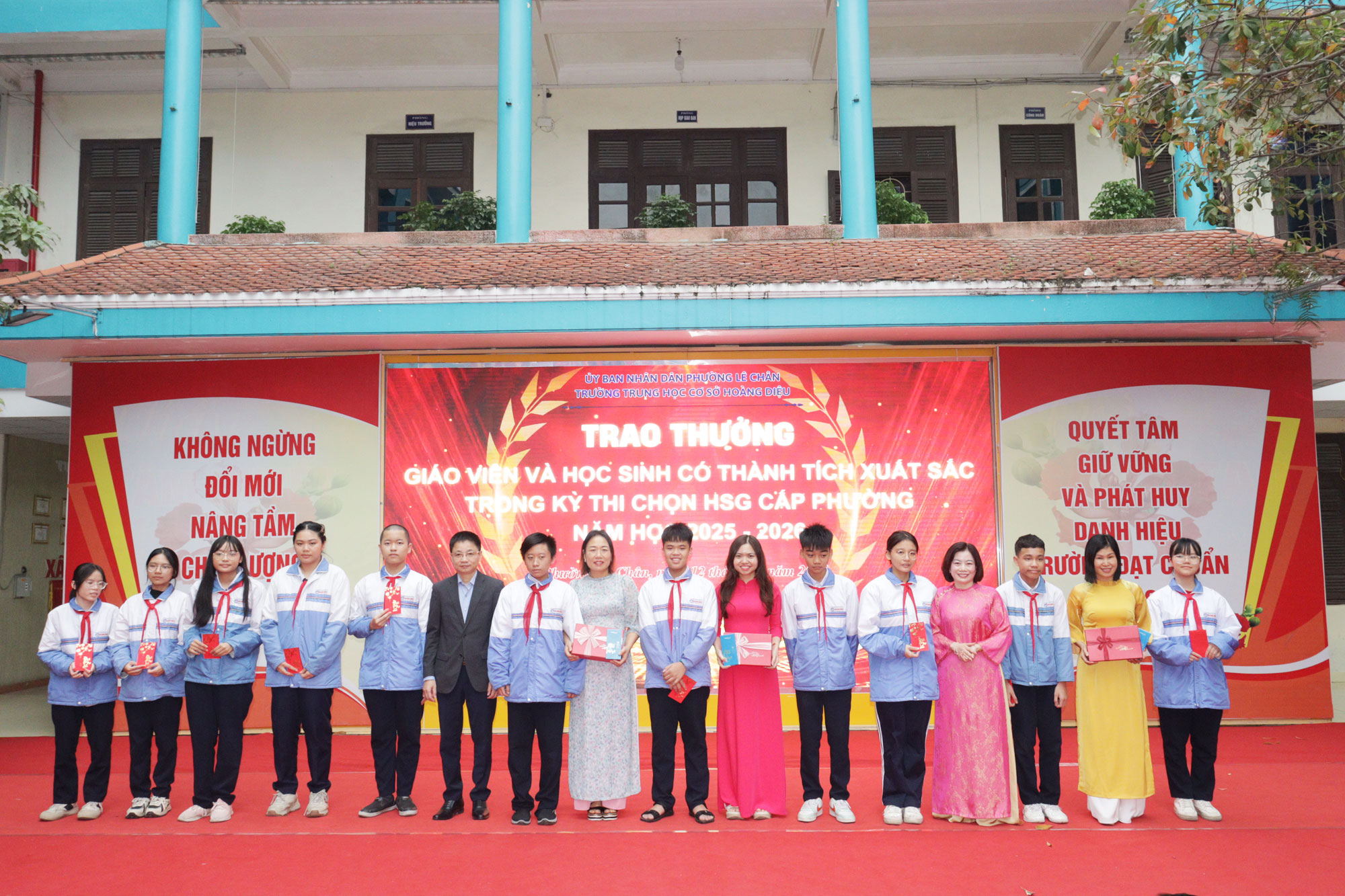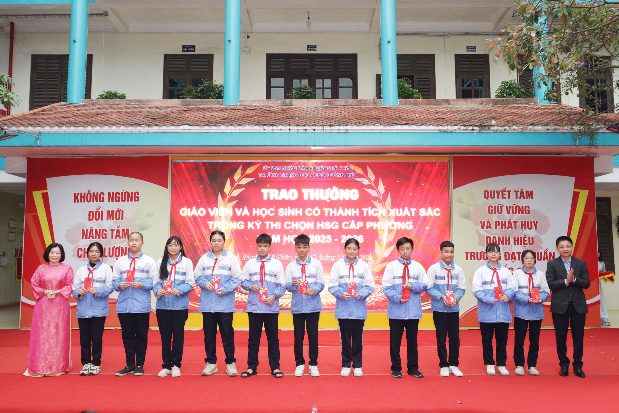 Tặng quà cho giáo viên, học sinh có thành tích trong tham gia Kỳ thi chọn học sinh giỏi phường năm học 2025 - 2026.Bên cạnh ý nghĩa giáo dục truyền thống, chương trình cũng ghi nhận những nỗ lực vượt bậc của đội tuyển học sinh giỏi lớp 9. Với tinh thần học tập nghiêm túc và ý chí vươn lên, 11 học sinh đã đạt thành tích cao trong Kỳ thi chọn học sinh giỏi phường năm học 2025 - 2026, trong đó có nhiều giải nhất, giải nhì và được chọn tham dự Kỳ thi học sinh giỏi cấp thành phố.