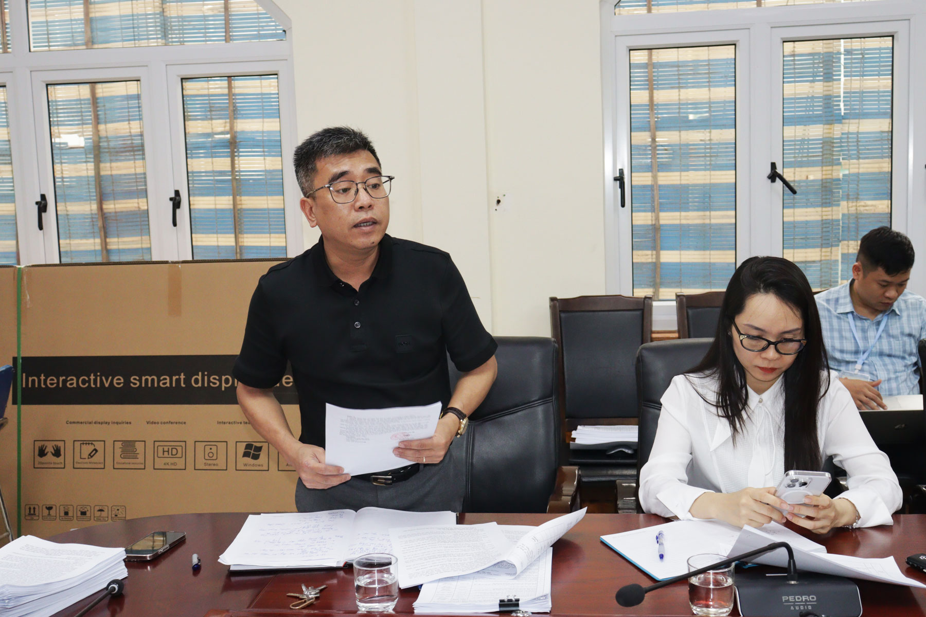 Đại diện các đơn vị phát biểu tại Hội nghị.Tại Hội nghị, các đại biểu đã tập trung thảo luận, đề xuất phương án tổ chức cưỡng chế thu hồi đất đối với các hộ gia đình chưa chấp hành quyết định thu hồi đất để thực hiện dự án xây dựng chung cư kết hợp trung tâm thương mại, dịch vụ theo quy hoạch. Nội dung thảo luận bao gồm thời gian, địa điểm, thành phần tham gia cưỡng chế, đồng thời thống nhất việc thành lập 6 tổ công tác giúp việc cho Ban cưỡng chế thu hồi đất.