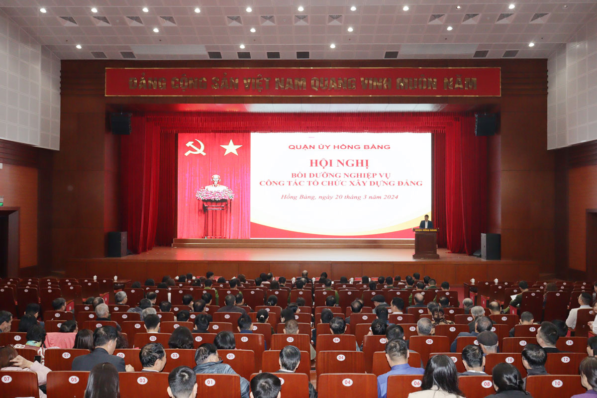 Các đại biểu dự Hội nghị.Với những kết quả toàn diện đã đạt được vừa qua, Đảng bộ quận Hồng Bàng đã lần thứ 3 liên tiếp vinh dự được thành phố đánh giá là Đảng bộ hoàn thành xuất sắc nhiệm vụ, tiêu biểu trong khối đảng bộ các quận, huyện. Kết quả trên có vai trò đóng góp mang tính trọng tâm, chủ đạo của công tác xây dựng, chỉnh đốn đảng và hệ thống chính trị của quận.