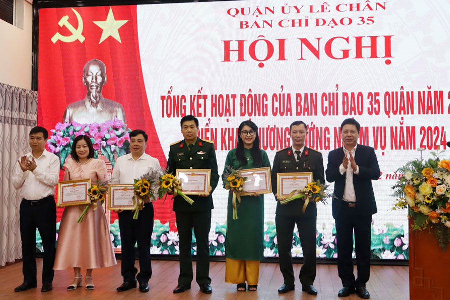 Nhân dịp này, Ban Chỉ đạo 35 quận đã tặng Giấy khen cho 05 tập thể có thành tích xuất sắc trong thực hiện nhiệm vụ bảo vệ nền tảng tư tưởng của Đảng, đấu tranh phản bác các quan điểm sai trái thù địch năm 2023.