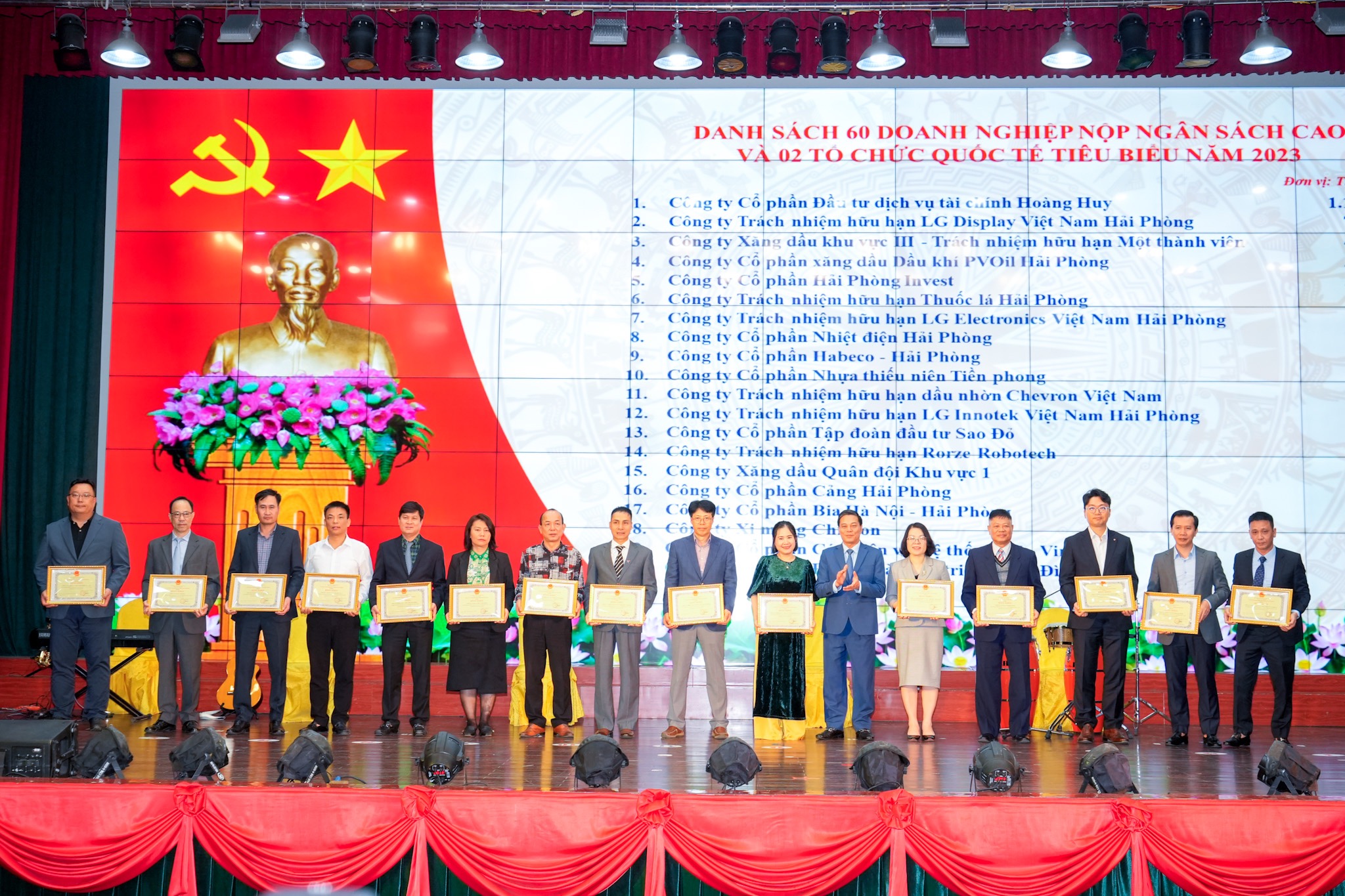 Năm qua, cộng đồng doanh nghiệp thành phố đã nỗ lực vượt qua khó khăn, không ngừng phát triển lớn mạnh. Hiện, toàn thành phố có hơn 22.000 doanh nghiệp đang hoạt động, trong đó có 3.521 doanh nghiệp thành lập mới, tăng gần 9,31% so với năm 2022. Một số doanh nghiệp nằm trong Top 500 doanh nghiệp lớn nhất Việt Nam như: Vinfast, Nhựa Tiền Phong, Việt Phát, các công ty LG, Vận tải biển Việt Nam, Cảng Hải Phòng, Hoàng Huy,…Các doanh nghiệp đã có đóng góp khá lớn cho ngân sách thành phố, đạt hơn 16.000 tỷ đồng, chiếm gần 37% tổng số thu. Trong đó, khối doanh nghiệp nhà nước Trung ương và địa phương đóng trên địa bàn đóng góp 2.512 tỷ đồng, chiếm 5,8% tổng số thu; khối doanh nghiệp FDI đóng góp 5.760 tỷ đồng, chiếm 13,25% tổng số thu; khối doanh nghiệp ngoài quốc doanh đóng góp gần 7.749 tỷ đồng, chiếm 17,93% tổng số thu. Có 9 doanh nghiệp nộp thuế trên 500 tỷ đồng, 22 doanh nghiệp nộp từ 100 đến 500 tỷ đồng, 25 doanh nghiệp nộp từ 50 đến gần 100 tỷ đồng,195 doanh nghiệp nộp từ 10 tỷ đến gần 50 tỷ đồng.