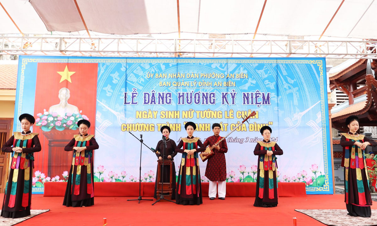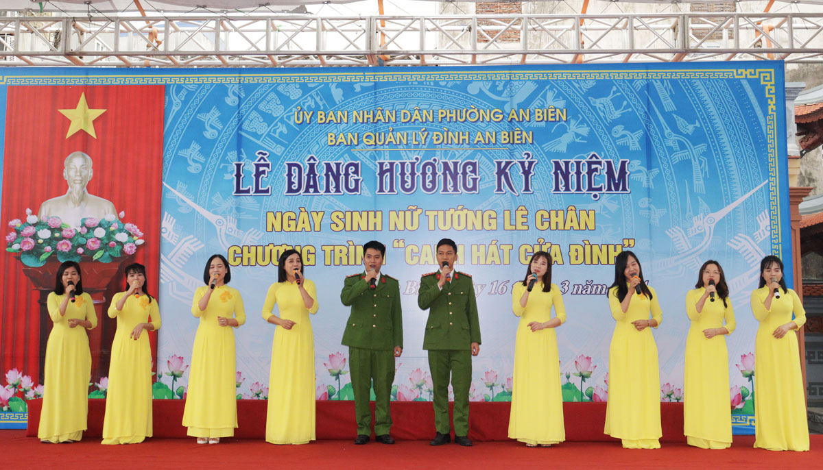 Một số tiết mục văn nghệ tại Đình An Biên.Bên cạnh đó, tại Đình An Biên, phường An Biên tổ chức chương trình "Canh hát cửa Đình" và chương trình văn hóa “Mạch nguồn yêu thương” với các tiết mục biểu diễn đặc sắc mang đậm nét văn hóa lịch sử; cùng với đó là các trò chơi dân gian, viết thư pháp, hát múa các ca khúc về Hải Phòng; chương trình góp thêm một không khí hân hoan vui tươi sôi động và đầy tự hào trong Lễ hội năm nay.