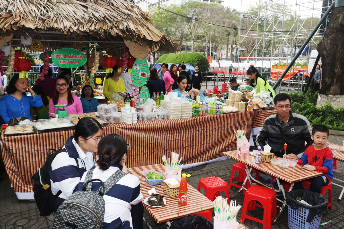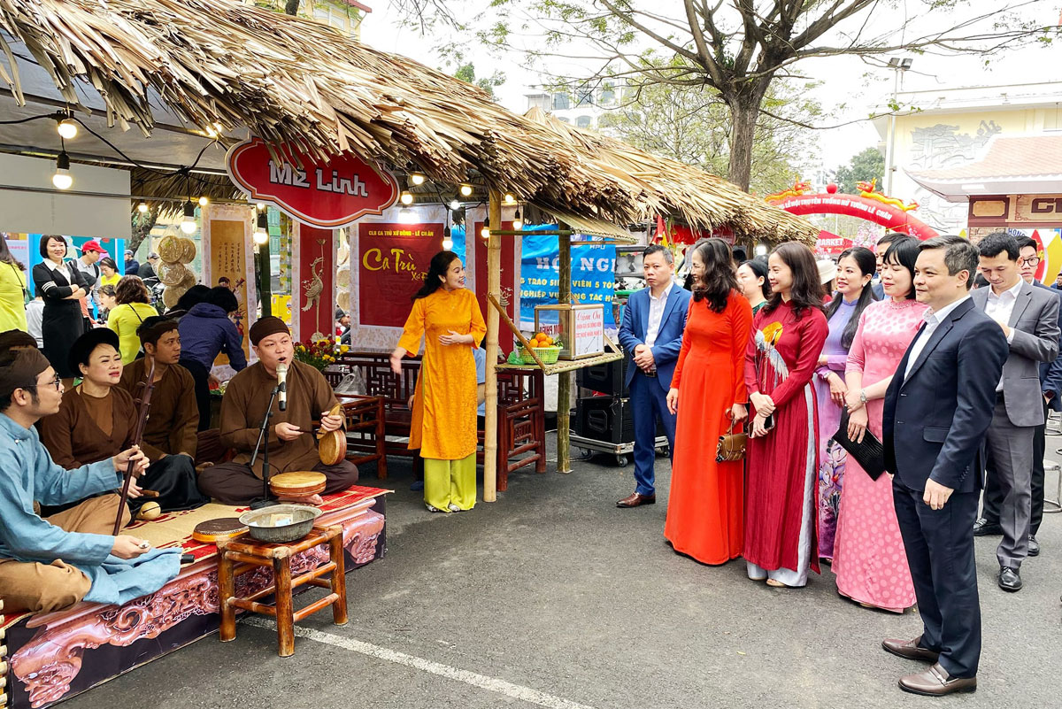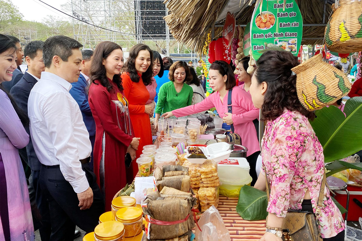 Lãnh đạo quận Lê Chân và đông đảo Nhân dân, du khách tham quan khu vực chợ quê “Làng vẻn”.Đặc biệt, tại khu vực chợ quê “Làng vẻn” với hàng chục gian hàng mang đậm dấu ấn của phiên chợ xưa với các món quà quê như: bánh đa cua, cá kho, bánh đúc, khoai sắn, cây xanh, gian trưng bày thư pháp, hát xẩm…đã trở thành nét đặc sắc rất riêng của Lễ hội Nữ tướng Lê Chân, thu hút đông đảo người dân tham dự, háo hức được hòa mình vào không gian chợ xưa đậm nét Việt.
