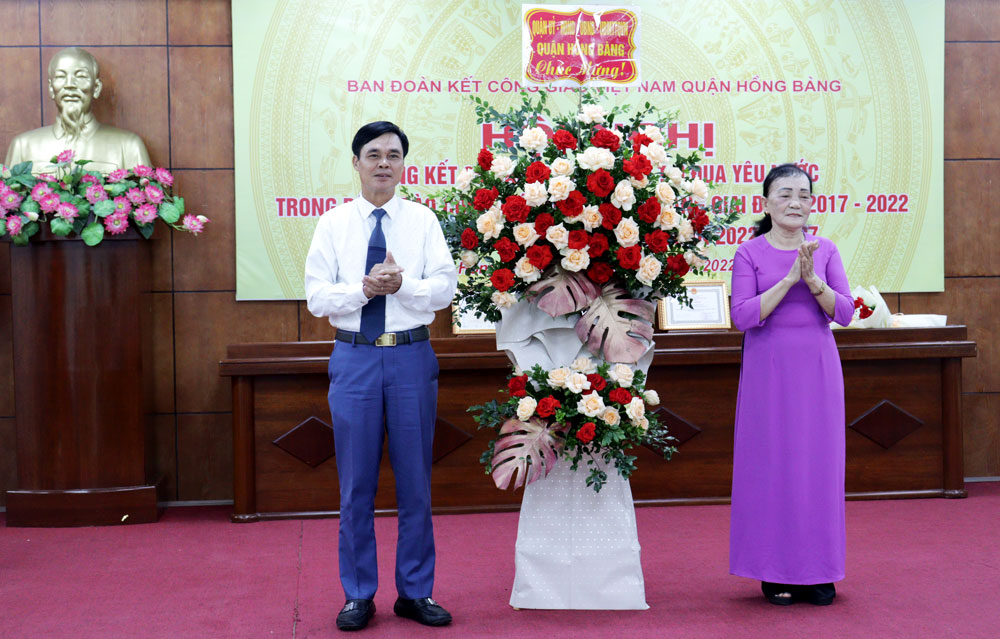 Nhân dịp này, 14 tập thể, cá nhân được Chủ tịch UBND quận và Chủ tịch Ủy ban MTTQ Việt Nam quận biểu dương, khen thưởng đã có thành tích xuất sắc trong phong trào thi đua yêu nước của đồng bào Công giáo quận Hồng Bàng giai đoạn 2017 - 2022.