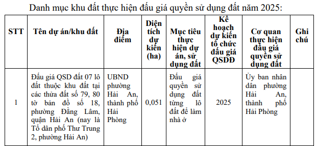 Công khai Kế hoạch, danh mục khu đất thực hiện đấu giá quyền sử dụng đất trên địa bàn phường Hải An năm 2025