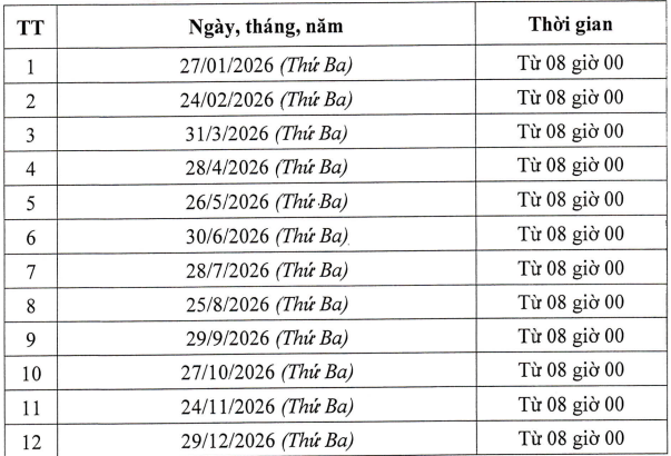Thông báo lịch tiếp công dân định kỳ của Chủ tịch Ủy ban nhân dân thành phố năm 2026