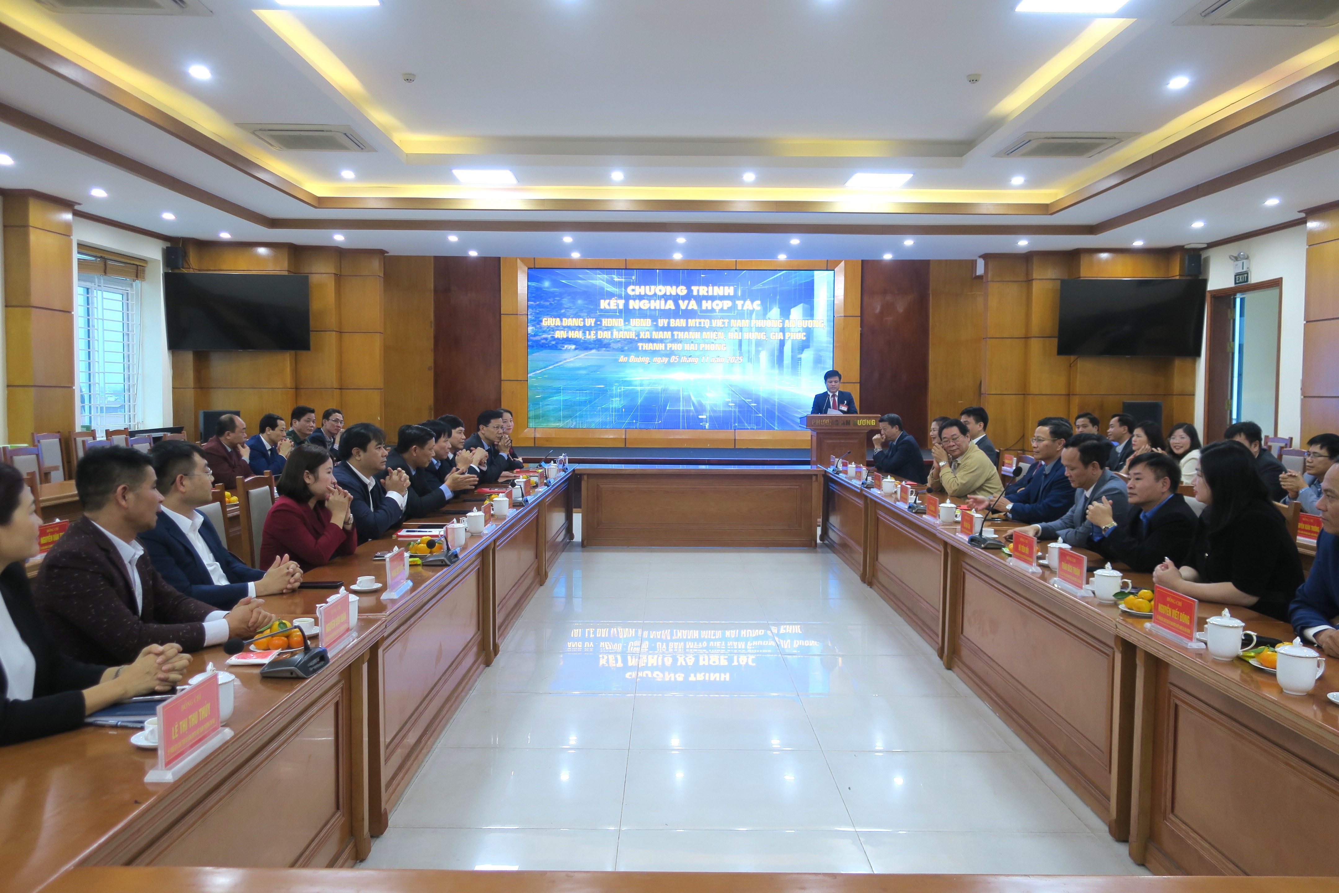 Đại biểu tham dự chương trình.Chương trình kết nghĩa, hợp tác giữa Đảng ủy 6 xã, phường là hoạt động có ý nghĩa chính trị - xã hội sâu sắc, góp phần thắt chặt tình đoàn kết, gắn bó, tăng cường giao lưu, trao đổi, học hỏi kinh nghiệm giữa các địa phương của thành phố Hải Phòng trong công tác xây dựng Đảng, hệ thống chính trị; phát triển kinh tế - xã hội; bảo đảm quốc phòng, an ninh; giữ gìn trật tự, an toàn xã hội; xây dựng nông thôn mới, đô thị văn minh và thúc đẩy chuyển đổi số.