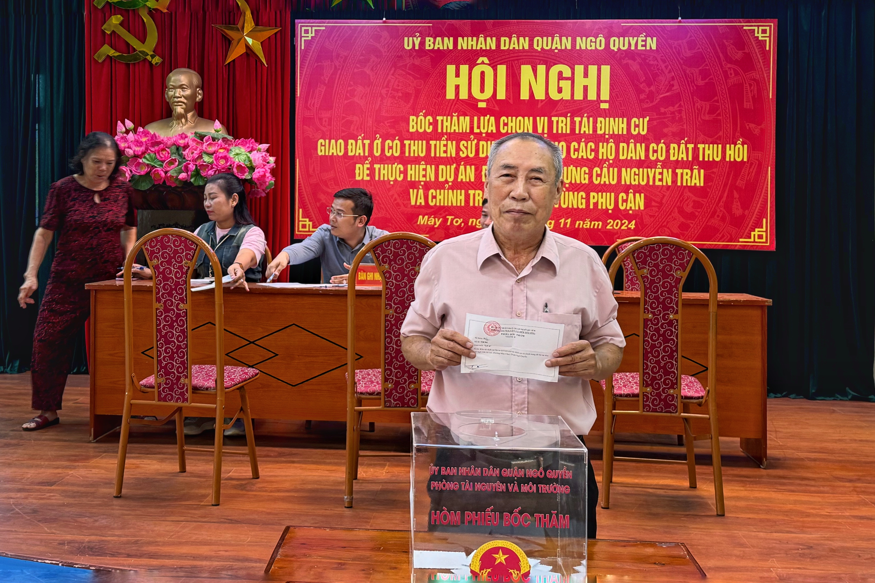 (Haiphong.gov.vn) - Chiều 6/11, tại trụ sở UBND phường Máy Tơ, UBND quận Ngô Quyền tổ chức Hội nghị bốc thăm lựa chọn vị trí tái định cư, giao đất ở có thu tiền sử dụng đất cho các hộ dân có đất bị thu hồi để thực hiện Dự án Đầu tư xây dựng (ĐTXD) cầu Nguyễn Trãi và chỉnh trang đô thị vùng phụ cận.