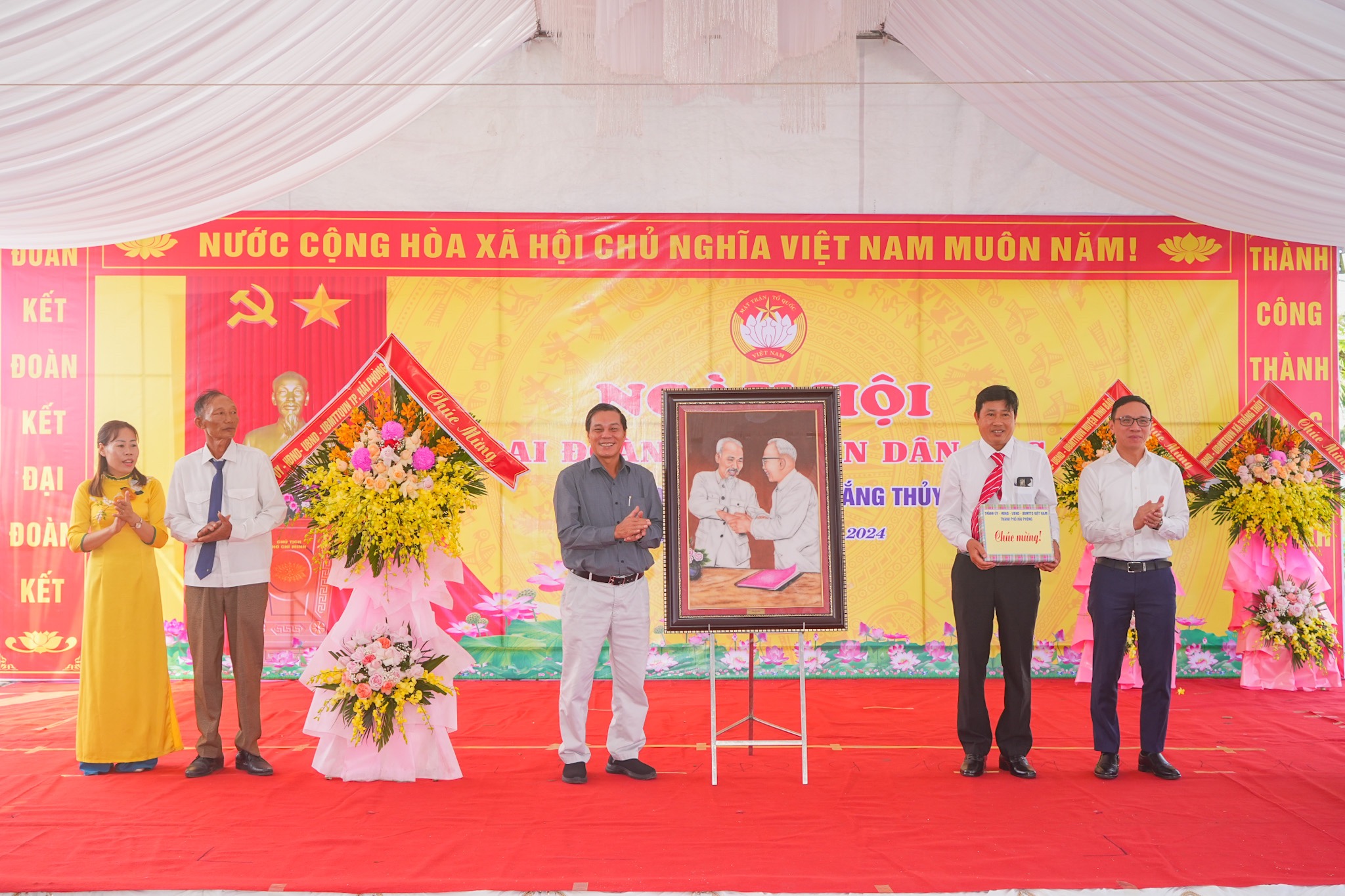Bí thư Huyện ủy Vĩnh Bảo Nguyễn Hoàng Long tặng hoa chúc mừng Nhân dân thôn Đông Lôi 2.Tại buổi Lễ, các đại biểu và Nhân dân thôn Đông Lôi 2, xã Thắng Thủy, Huyện Vĩnh Bảo cùng ôn lại lịch sử, truyền thống vẻ vang của Mặt trận Tổ quốc Việt Nam trong sự nghiệp giải phóng dân tộc, thống nhất đất nước, xây dựng và bảo vệ tổ quốc. Đồng thời, khẳng định quyết tâm thực hiện tốt Cuộc vận động “Toàn dân đoàn kết xây dựng nông thôn mới, đô thị văn minh”; góp phần cùng Đảng bộ, chính quyền và nhân dân trong xã thực hiện thắng lợi mục tiêu phát triển kinh tế- xã hội, quốc phòng- an ninh, duy trì và nâng cao chất lượng các tiêu chí nông thôn mới kiểu mẫu, là tiền đề để thực hiện thành công Nghị quyết Đại hội Đảng bộ các cấp nhiệm kỳ 2025-2030, góp phần xây dựng quê hương Thắng Thủy ngày càng giàu đẹp, văn minh và hiện đại.