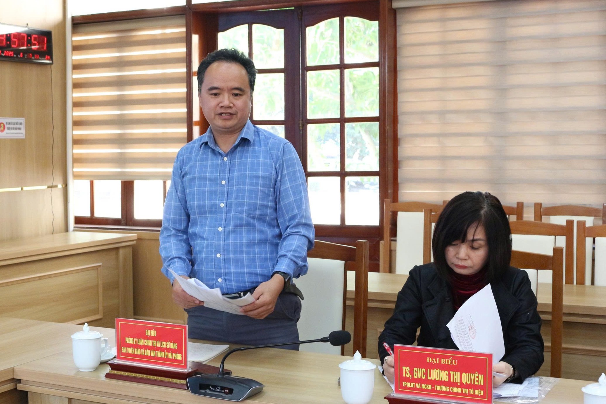 Đại biểu Ban Tuyên giáo và Dân vận Thành ủy phát biểu ý kiến.Hội nghị đã thẳng thắn đánh giá những kết quả đạt được, chỉ rõ các tồn tại, hạn chế; đồng thời rút ra nhiều bài học kinh nghiệm trong công tác giảng dạy, quản lý và tổ chức lớp học. Trên cơ sở đó, kế hoạch bồi dưỡng lý luận chính trị năm 2026 được triển khai với các nhiệm vụ, giải pháp cụ thể, tập trung vào nâng cao chất lượng đội ngũ giảng viên, đổi mới phương pháp giảng dạy và đẩy mạnh ứng dụng công nghệ thông tin trong đào tạo. Hội nghị thống nhất quyết tâm thực hiện tốt nhiệm vụ bồi dưỡng lý luận chính trị, đáp ứng yêu cầu xây dựng đội ngũ cán bộ, đảng viên đủ phẩm chất, năng lực, uy tín, phục vụ nhiệm vụ chính trị của địa phương trong giai đoạn mới.