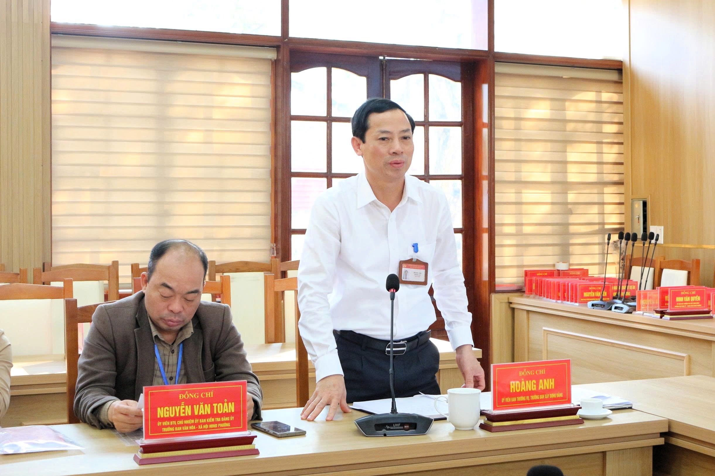 Đại biểu Đảng ủy phường phát biểu ý kiến.Nhân dịp này, Đảng ủy phường An Dương đã công bố Quyết định số 227-QĐ/ĐU ngày 24/12/2025 về việc thành lập đội ngũ giảng viên kiêm nhiệm của Trung tâm Chính trị phường An Dương.