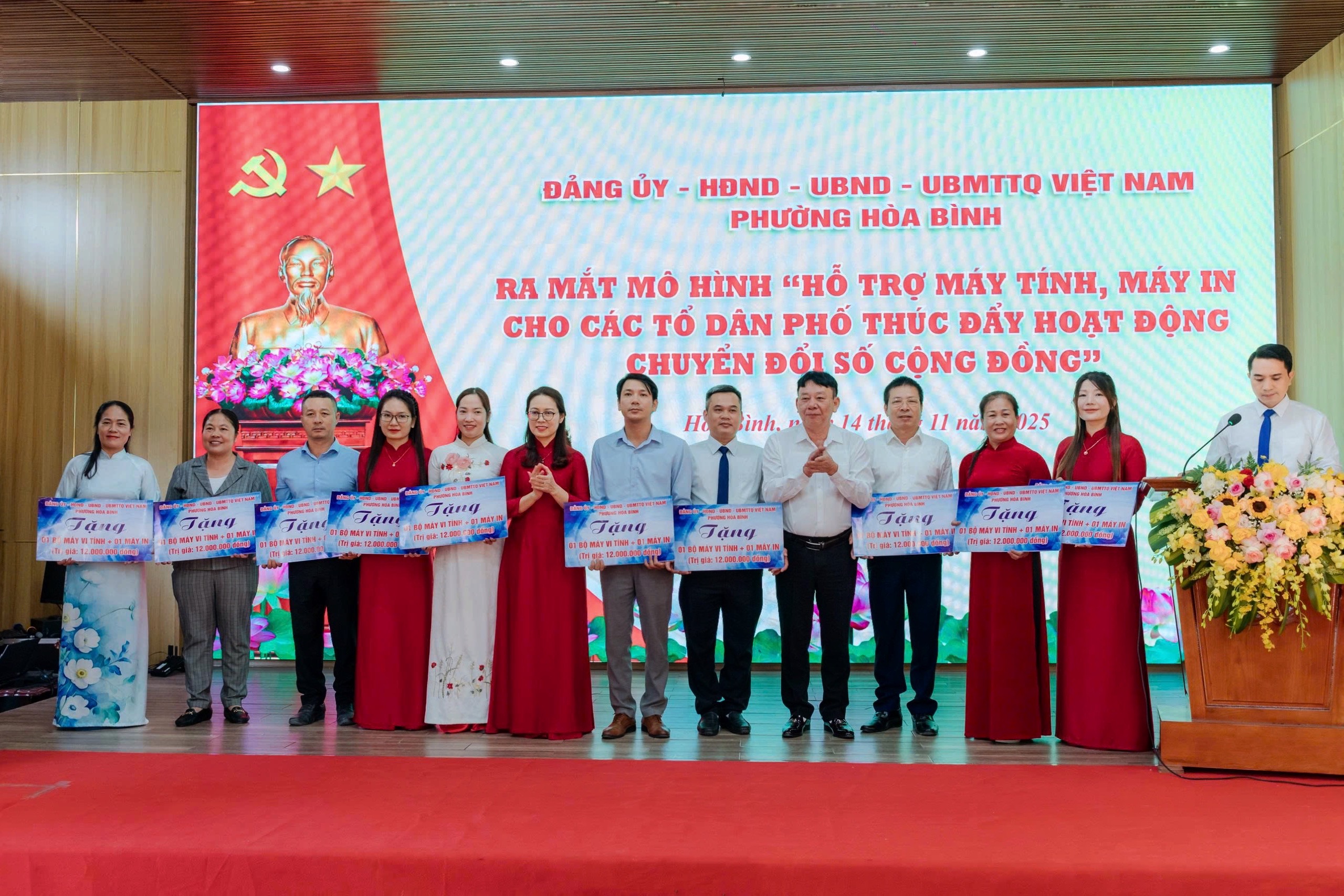 Phường Hòa Bình ra mắt mô hình “Hỗ trợ máy tính, máy in cho các Tổ dân phố thúc đẩy hoạt động chuyển đổi số cộng đồng"Đại diện Đảng ủy phường cho biết việc trang bị máy tính, máy in là hoạt động thiết thực nhằm thúc đẩy chuyển đổi số ở cơ sở, giúp cán bộ, đảng viên và người dân tiếp cận công nghệ thuận lợi hơn, từng bước trở thành “công dân số” trong thời đại mới.