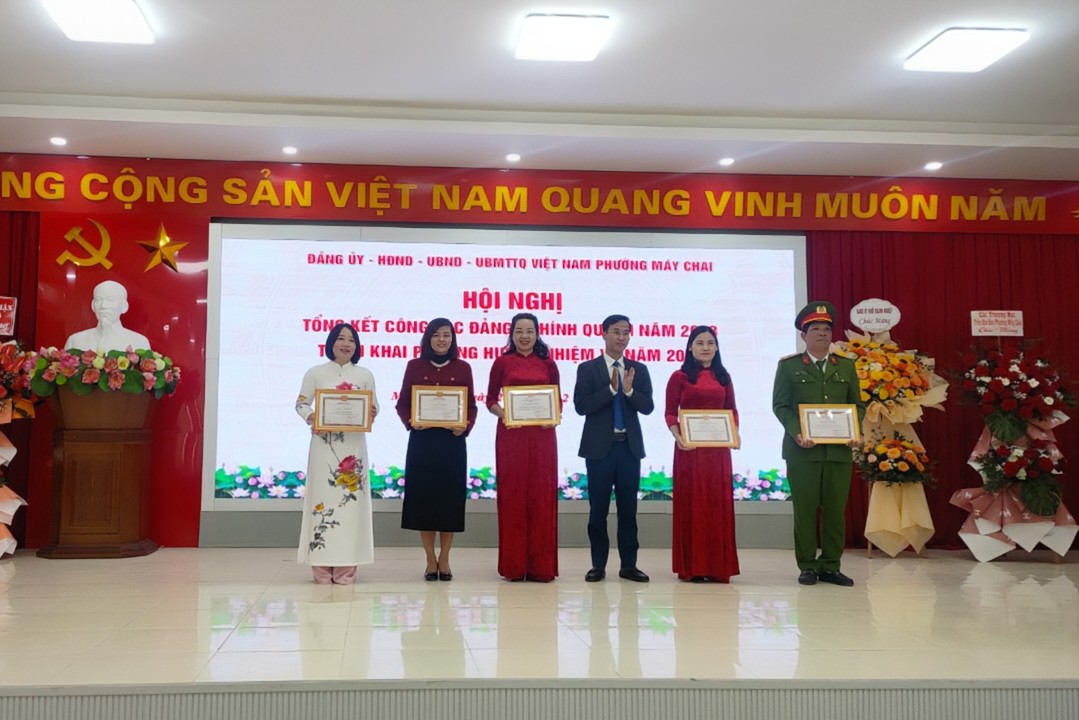 Nhân dịp này, Đảng ủy phường Máy Chai biểu dương, khen thưởng các Chi bộ, tập thể và cá nhân hoàn thành xuất sắc nhiệm vụ công tác năm 2023. Đại diện các đơn vị cũng triển khai Ký kết giao ước thi đua năm 2024./.