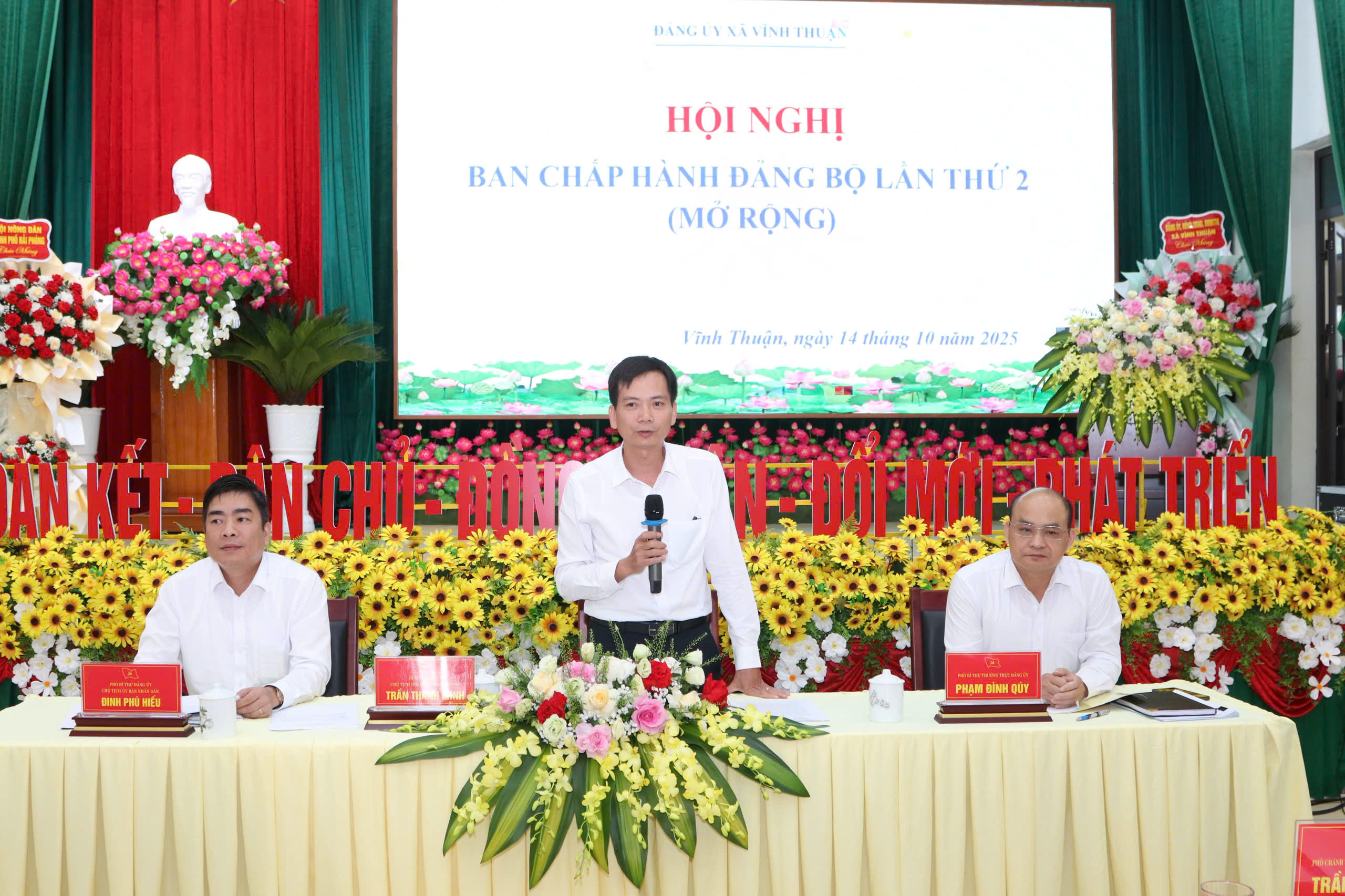 (Haiphong.gov.vn)- Chiều 14/10, Đảng ủy xã Vĩnh Thuận tổ chức Hội nghị Ban Chấp hành Đảng bộ mở rộng sơ kết công tác Quý III và triển khai nhiệm vụ, giải pháp trọng tâm Quý IV năm 2025. Dự hội nghị có đại diện lãnh đạo các Ban Thành ủy phụ trách xã;  các đồng chí trong Ban Thường vụ, Ban Chấp hành Đảng ủy và lãnh đạo các cơ quan, đơn vị, trường học, trạm y tế trên địa bàn xã.