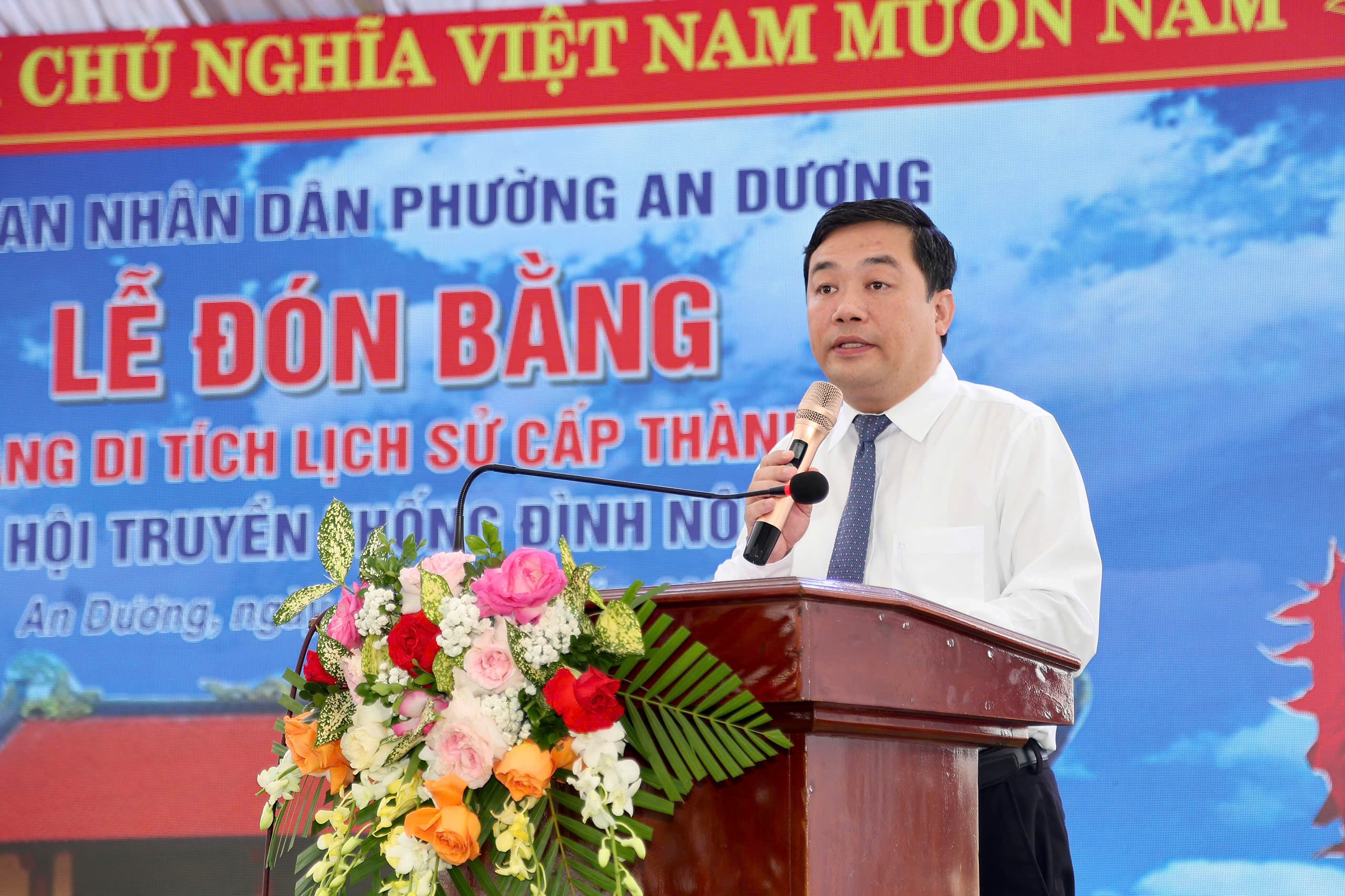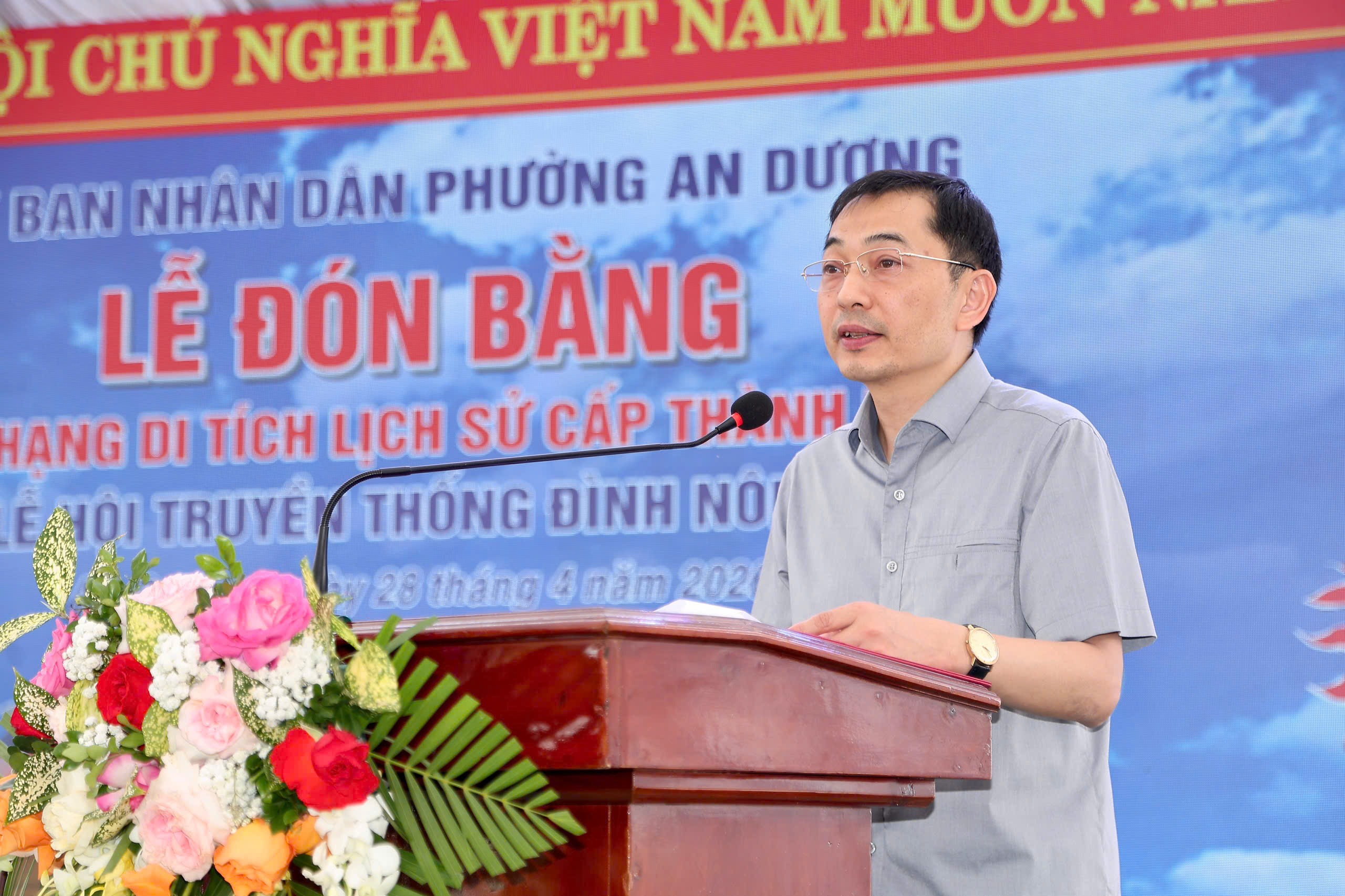 Đồng chí Vũ Khắc Lịch, Phó Giám đốc Sở Văn hóa, Thể thao và Du lịch phát biểu.Phát biểu tại buổi Lễ, đồng chí Vũ Khắc Lịch, Phó Giám đốc Sở Văn hóa, Thể thao và Du lịch cho biết: Trong bối cảnh hiện nay, khi quá trình đô thị hóa và phát triển kinh tế - xã hội diễn ra mạnh mẽ, công tác bảo tồn và phát huy giá trị di sản văn hóa càng có ý nghĩa quan trọng. Việc bảo vệ di tích không chỉ dừng lại ở việc giữ gìn nguyên trạng, mà cần được đặt trong mối quan hệ hài hòa với phát triển, để di sản thực sự “sống” trong đời sống cộng đồng.