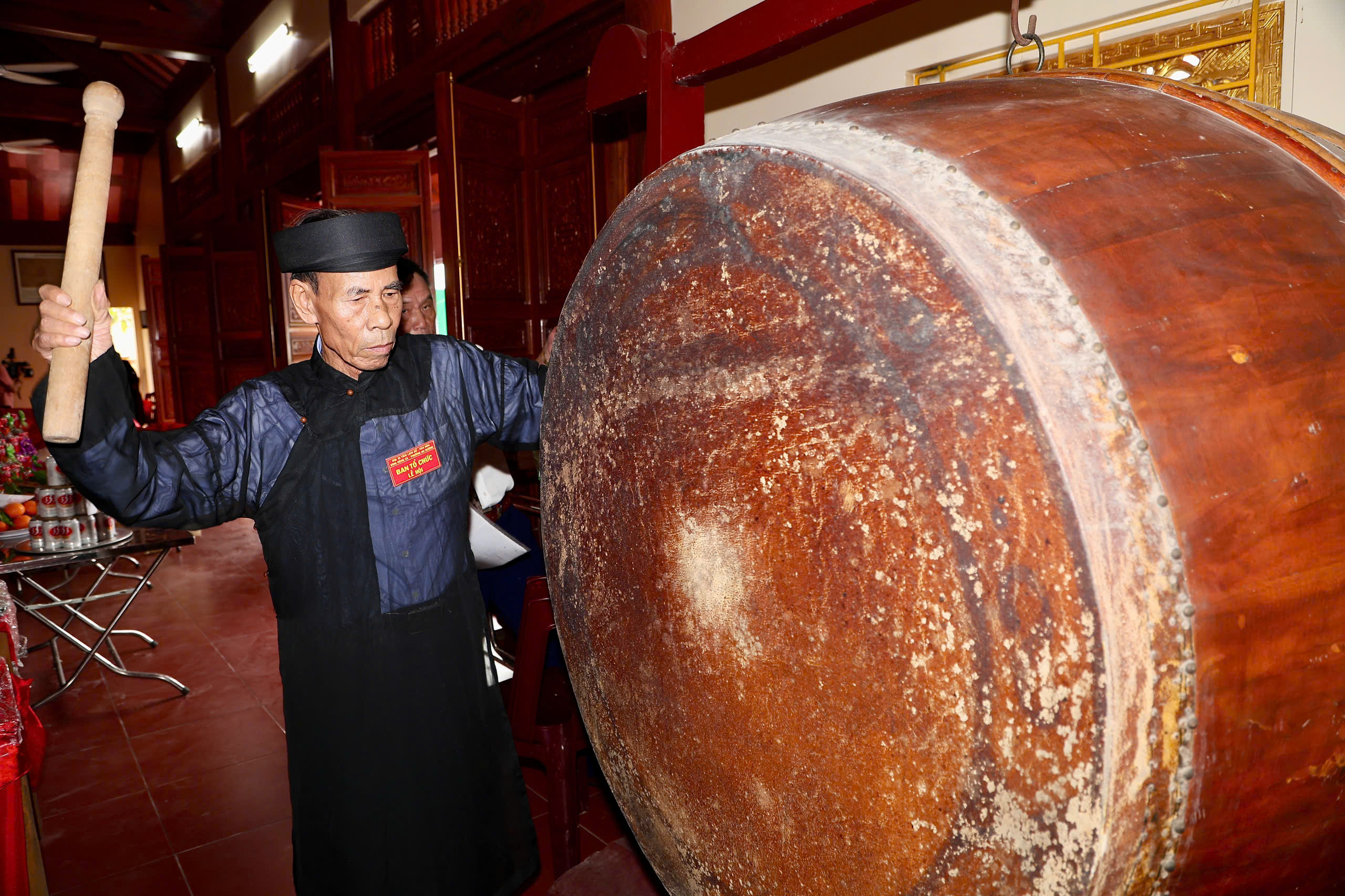 Nghi thức đánh trống khai hội.Tại Lễ hội, đại biểu cùng Nhân dân địa phương thành kính dâng hương tưởng niệm các vị Thành hoàng và Anh linh các Anh hùng liệt sỹ./.