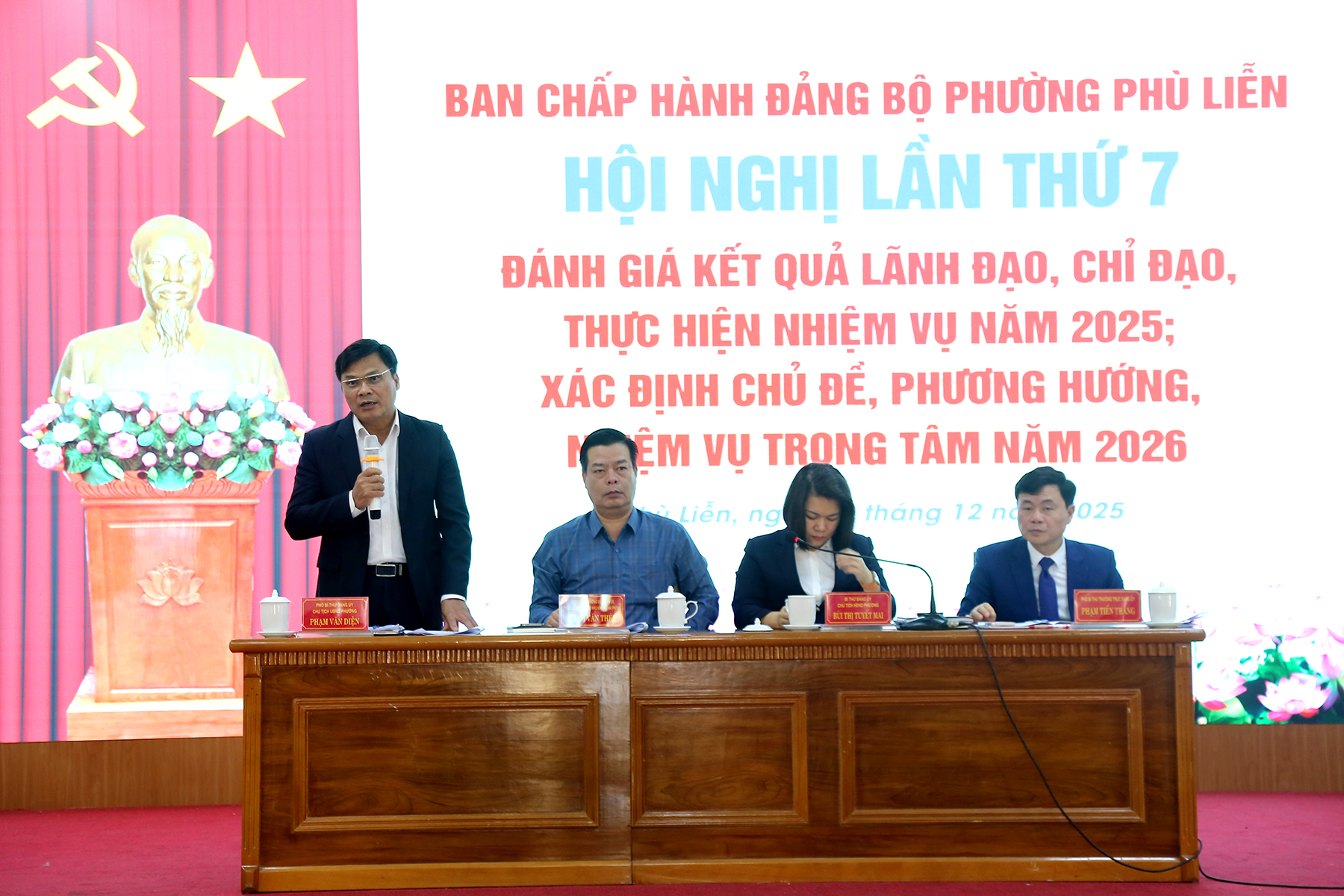 (Haiphong.gov.vn) – Sáng 22/12, Ban Chấp hành Đảng bộ phường Phù Liễn tổ chức Hội nghị lần thứ 7 nhằm đánh giá kết quả lãnh đạo, chỉ đạo thực hiện nhiệm vụ năm 2025, đồng thời xác định chủ đề, phương hướng, nhiệm vụ trọng tâm năm 2026. Dự Hội nghị có các đồng chí: Phạm Văn Thép, Ủy viên Ban Thường vụ Thành ủy, Trưởng Ban Quản lý Khu kinh tế Hải Phòng; Trần Hồ Đăng, Phó Chủ nhiệm Ủy ban Kiểm tra Thành ủy.