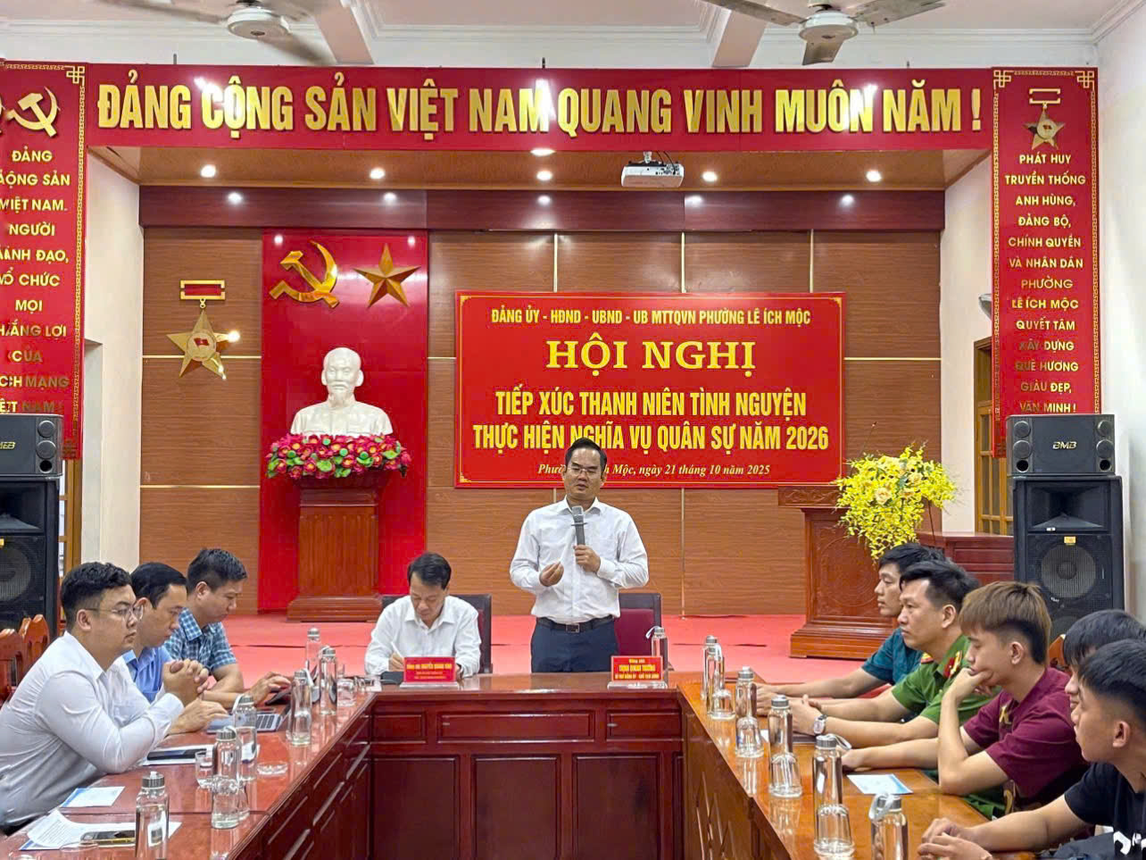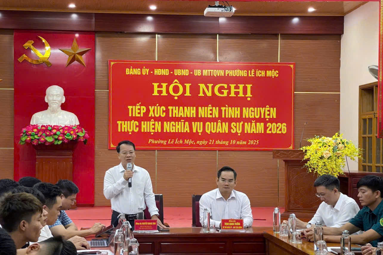 Lãnh đạo phường trao những phần quà ý nghĩa gửi tặng các thanh niên, thể hiện niềm tin, niềm tự hào của Đảng bộ và nhân dân địa phương.Trong 22 thanh niên có 3 thanh niên sinh năm 2008 tuy chưa đủ tuổi nhưng đã sẵn sàng viết đơn khi đủ điều kiện nhập ngũ; 3 thanh niên đang học đại học, cao đẳng tự nguyện tạm gác việc học; 2 anh em sinh đôi cùng chung một lý tưởng; 2 thanh niên có anh, em đang tại ngũ vẫn tiếp bước viết đơn tình nguyện; và 12 thanh niên đã viết đơn trước thời điểm rà soát – tất cả cùng khẳng định tinh thần “Khi Tổ quốc cần – thanh niên Lê Ích Mộc sẵn sàng!”