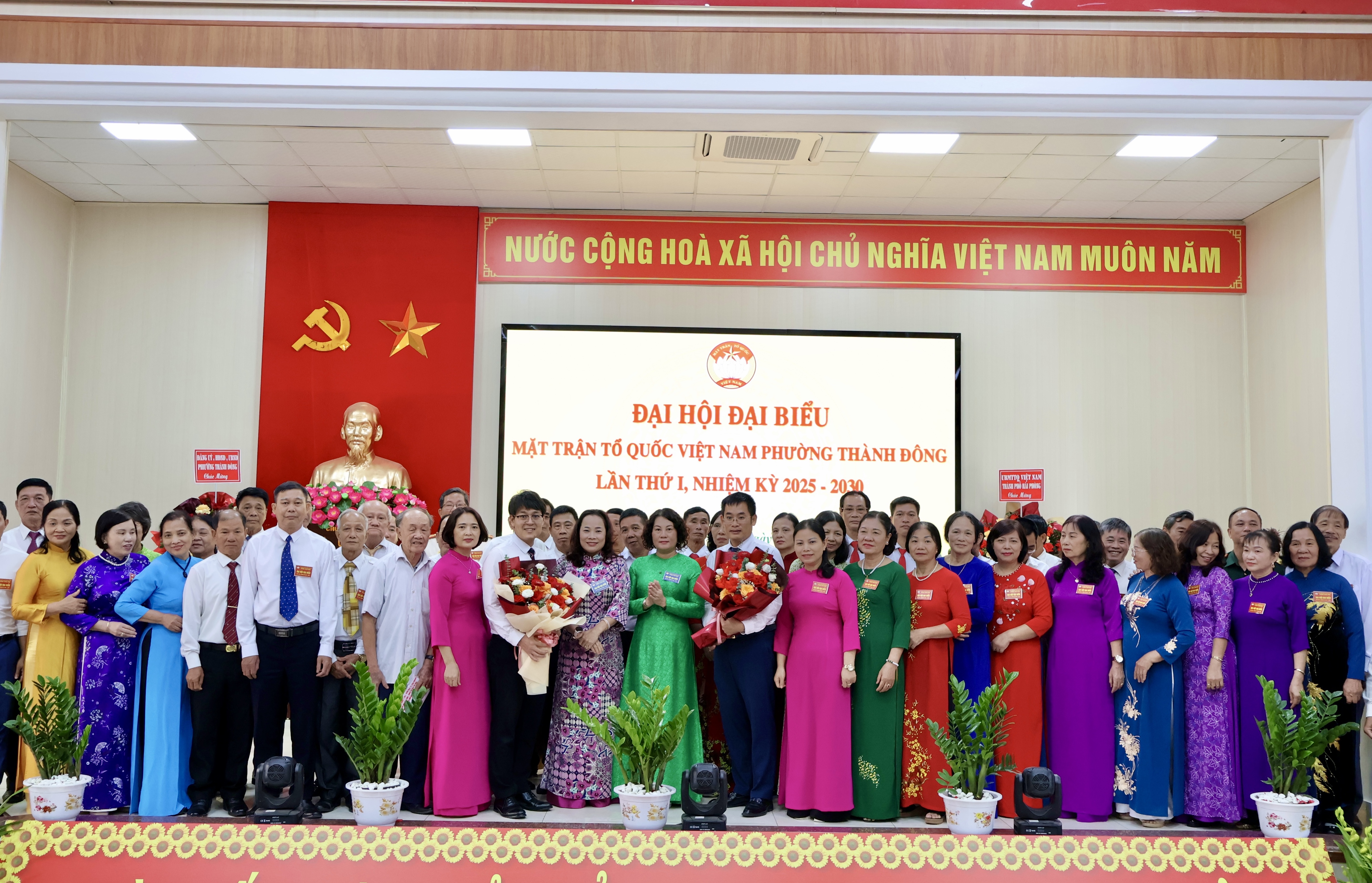 Lãnh đạo phường tặng hoa chúc mừng Ủy ban MTTQ Việt Nam phường Thành Đông khóa ITại Đại hội, các đại biểu đã hiệp thương cử 61 thành viên tham gia Ủy ban MTTQ Việt Nam phường Thành Đông khóa I, nhiệm kỳ 2025-2030. Họp phiên họp thứ Nhất, Ủy ban MTTQ Việt Nam phường Thành Đông nhiệm kỳ 2025-2030 đã hiệp thương cử Chủ tịch và 5 Phó Chủ tịch, đồng chí Hoàng Đức Tuấn được hiệp thương cử làm Chủ tịch Ủy ban MTTQ Việt Nam phường Thành Đông khóa I.