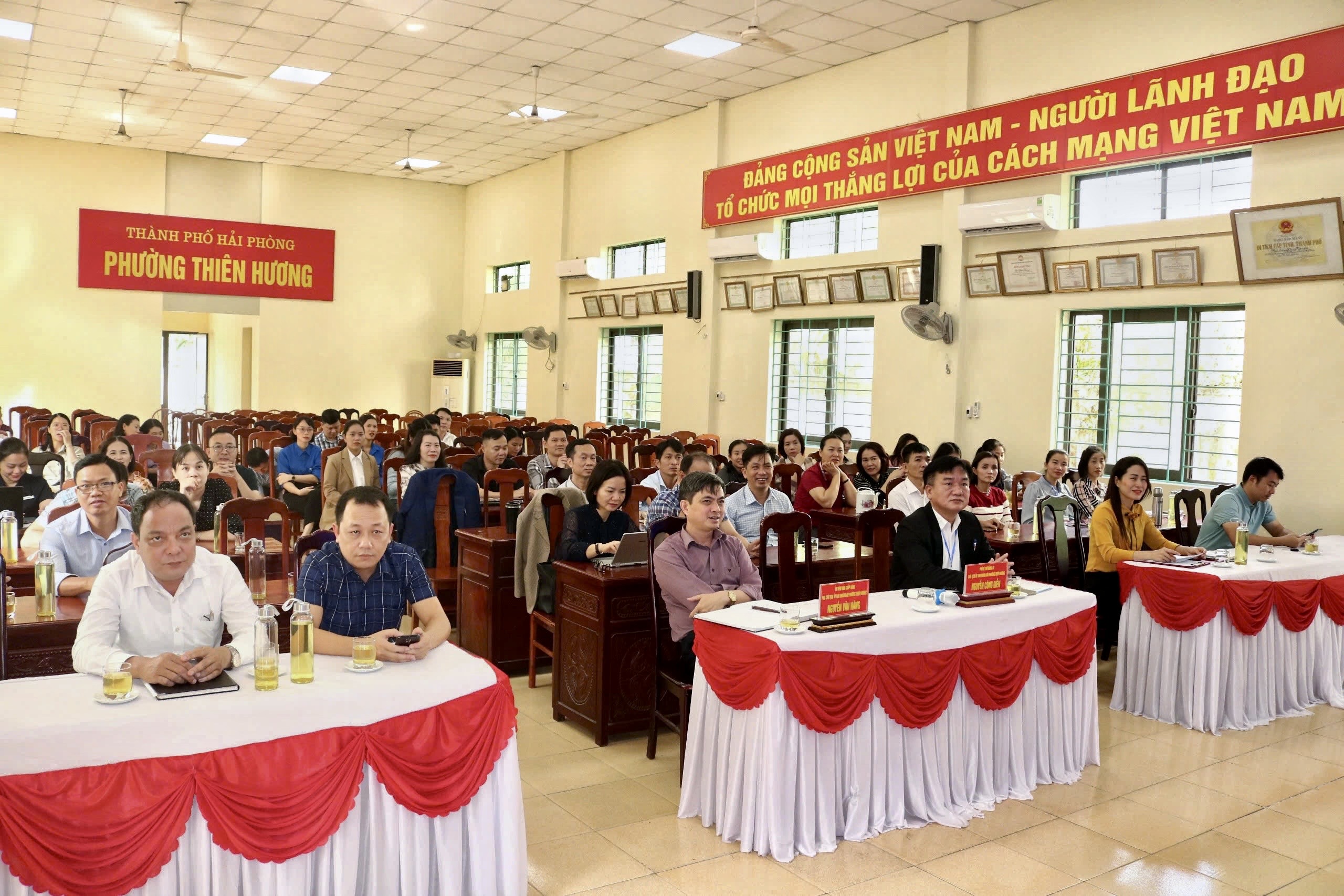 (Haiphong.gov.vn) - Nhằm nâng cao hiệu quả phục vụ người dân, doanh nghiệp, đồng thời thống nhất nghiệp vụ trong công tác tiếp nhận và xử lý hồ sơ thủ tục hành chính, ngày 8/11, UBND phường Thiên Hương tổ chức Hội nghị tập huấn nghiệp vụ công tác tiếp nhận, giải quyết thủ tục hành chính và tiếp nhận hồ sơ thủ tục hành chính phi địa giới.