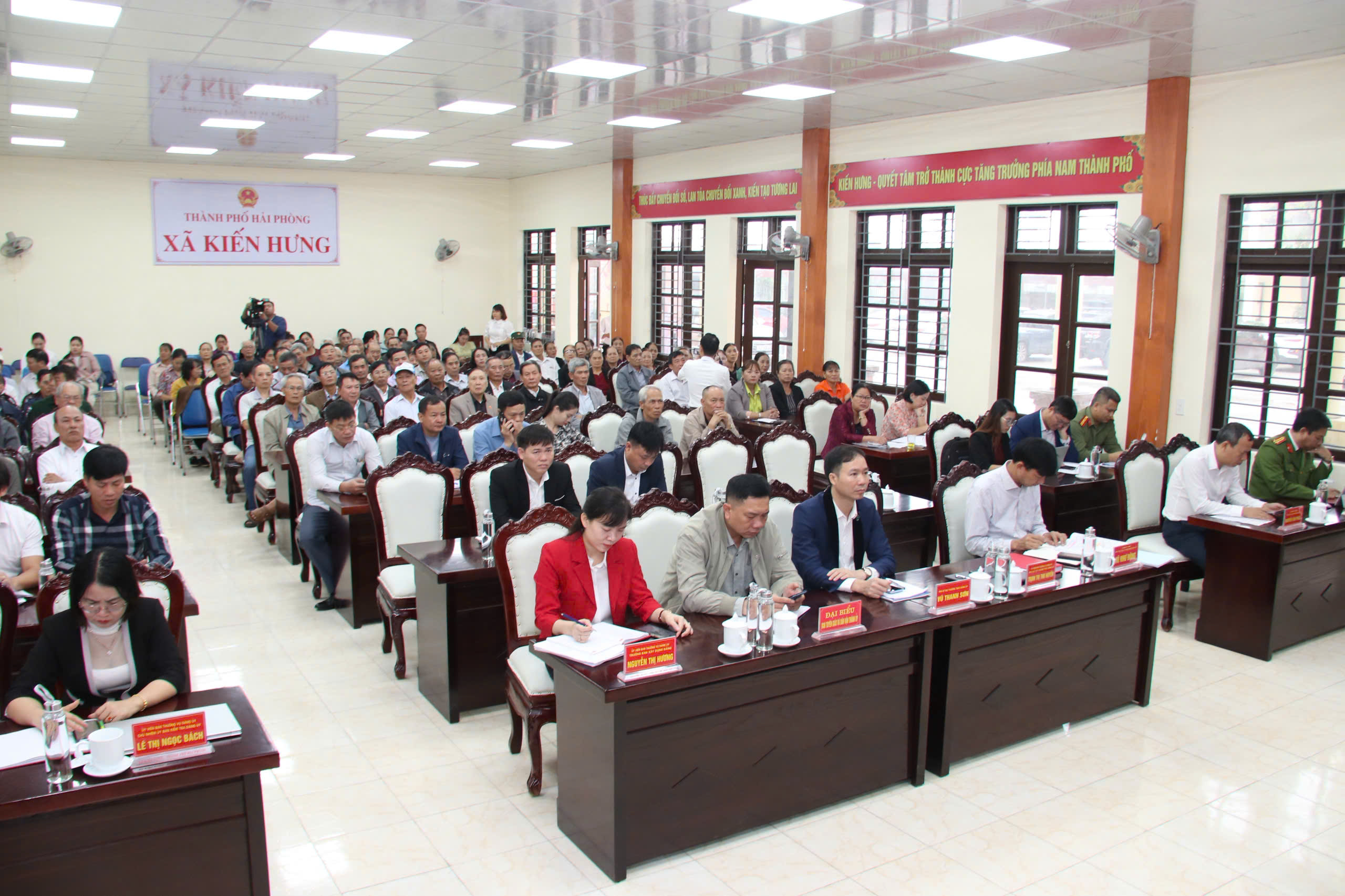 (Haiphong.gov.vn) - Sáng 8/11, Đảng ủy, UBND xã Kiến Hưng tổ chức Hội nghị đối thoại giữa người đứng đầu cấp ủy, chính quyền với Nhân dân trên địa bàn. Các đồng chí Lê Hữu Toản - Bí thư Đảng ủy, Chủ tịch HĐND xã và đồng chí Phạm Văn Định - Chủ tịch UBND xã chủ trì Đối thoại. Cùng dự Hội nghị có đại diện lãnh đạo các Ban, ngành, đoàn thể và đông đảo Nhân dân địa phương.