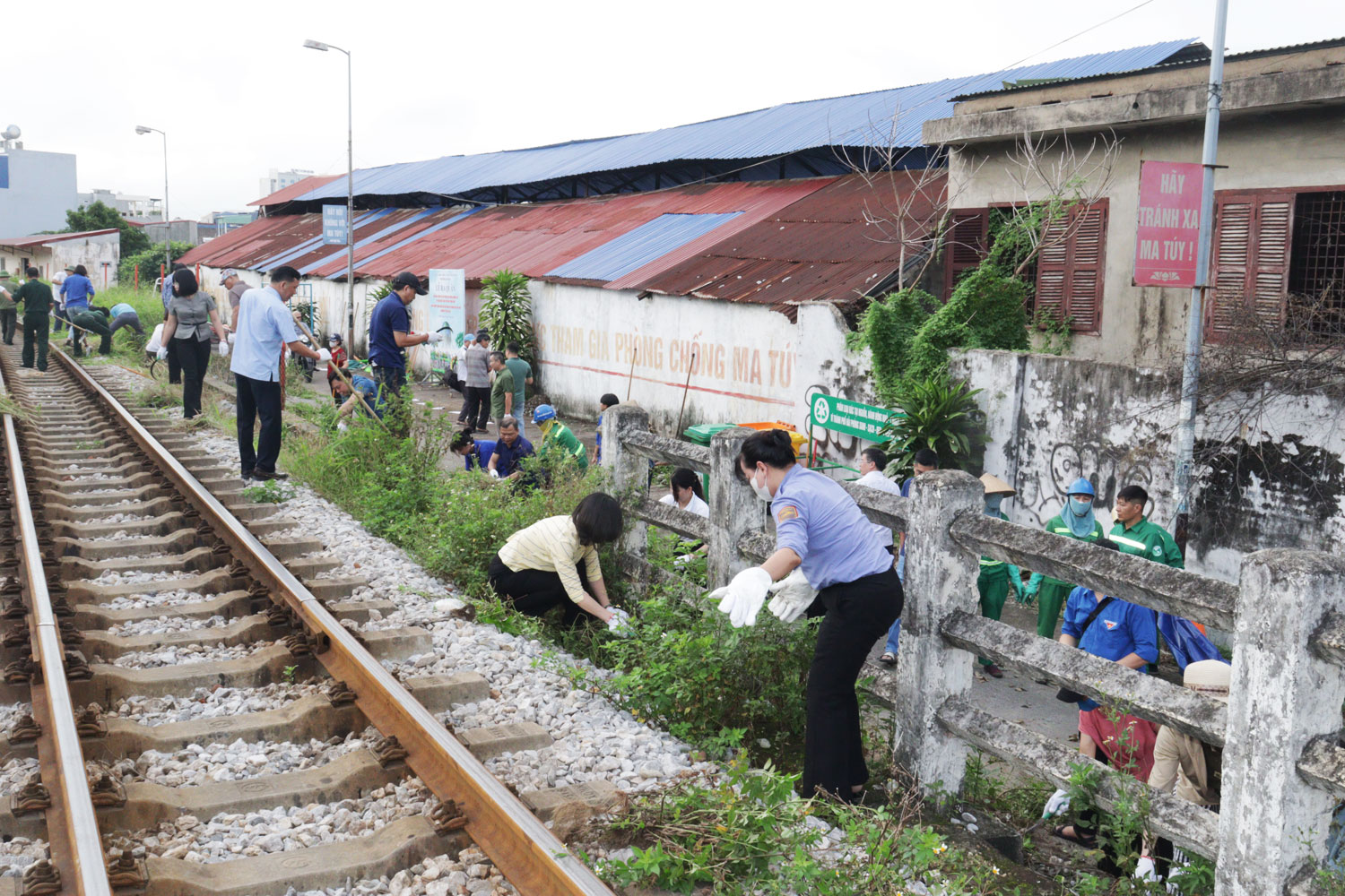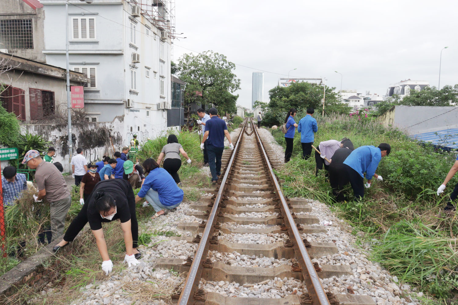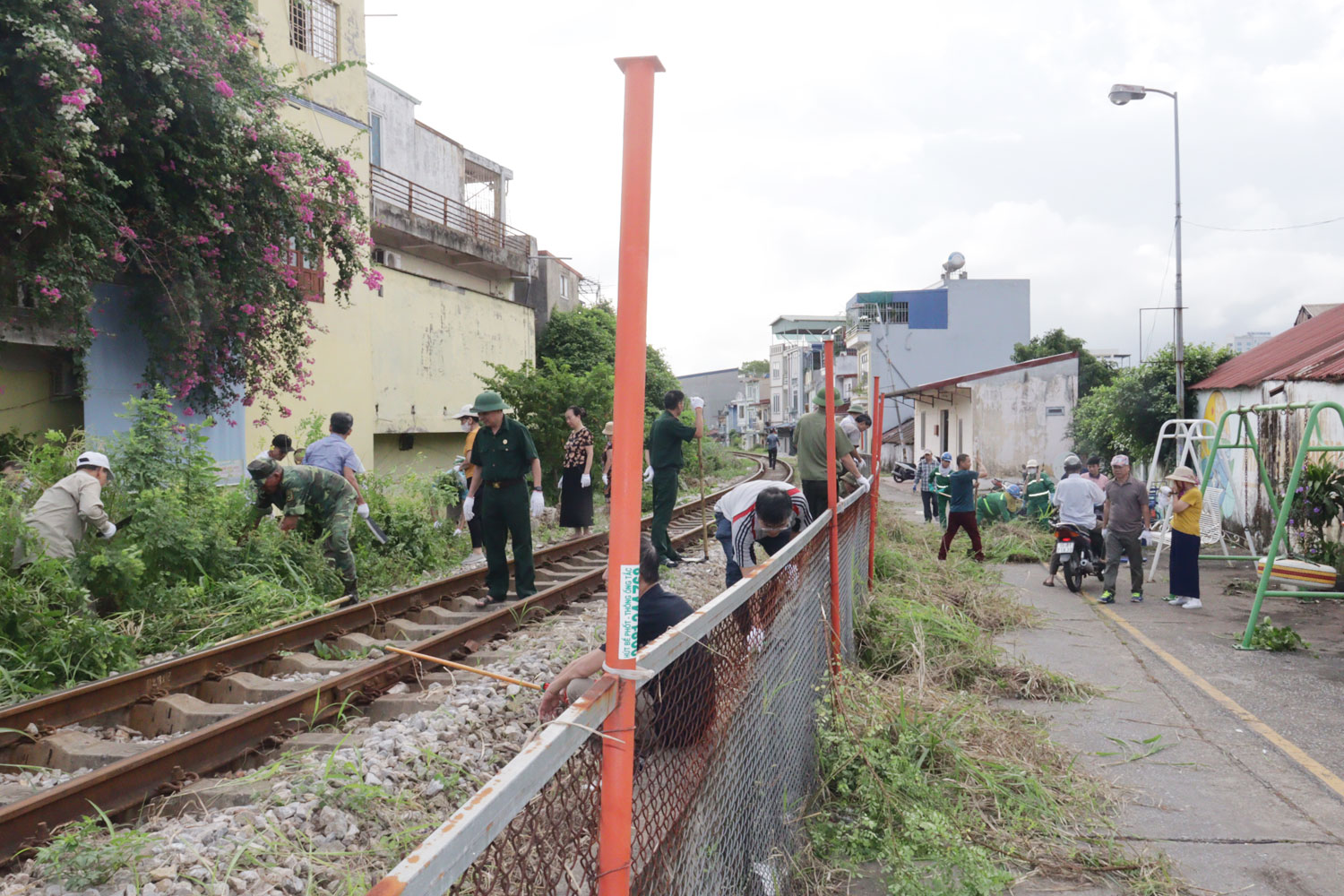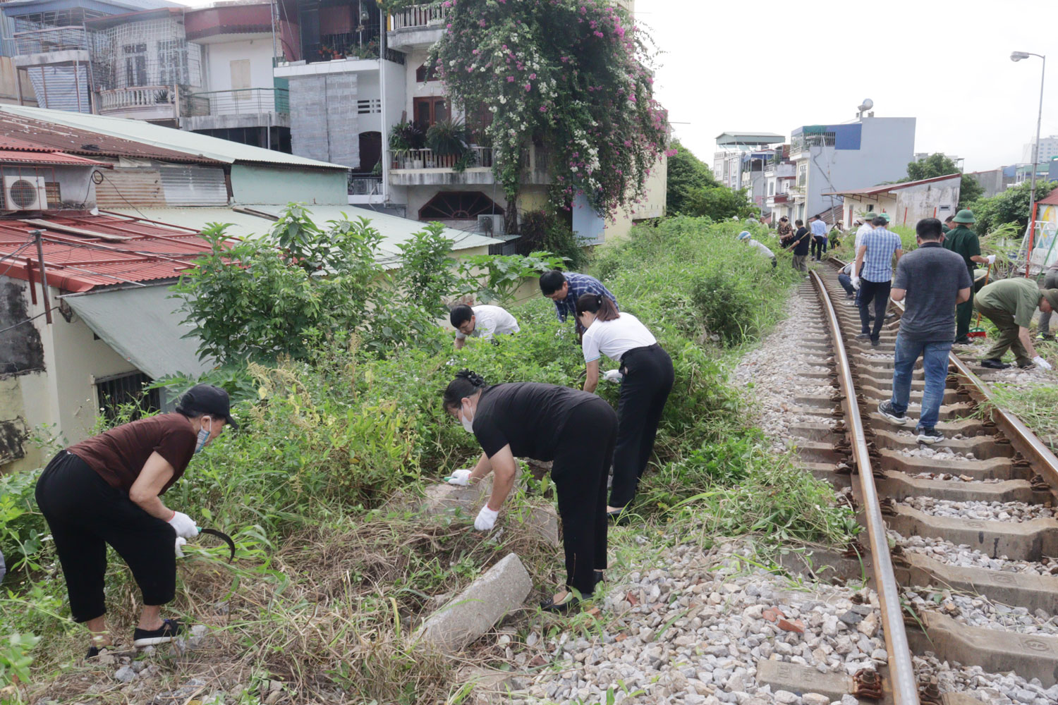 Cuộc ra quân tập trung kiểm tra, nhắc nhở tình trạng các hộ lấn chiếm vi phạm hành lang đường sắt để chậu cây cảnh, trồng cây; xóa bỏ các điểm đen tiềm ẩn nguy cơ tai nạn dọc tuyến đường sắt; tổng vệ sinh môi trường, quét dọn, thu gom rác thải, phát quang cỏ dại, bóc xóa quảng cáo rao vặt bờ tường, gốc cây, cột điện trái quy định trên tuyến đường sắt và các ngõ, ngách, tuyến đường.
