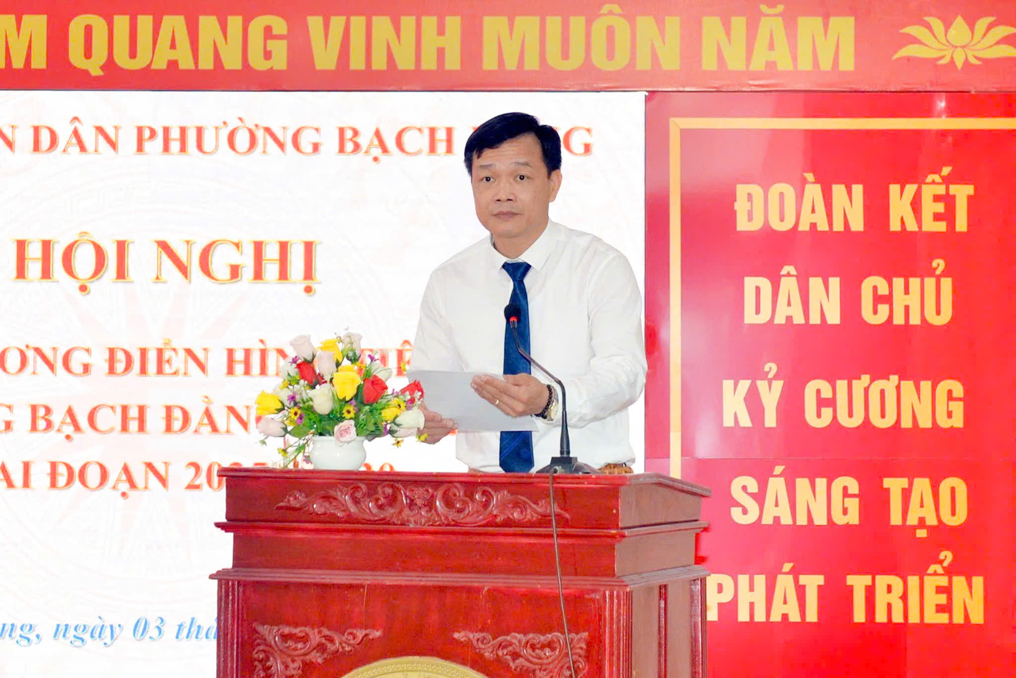 Biểu dương, khen thưởng các điển hình tiên tiến.Hội nghị Tuyên dương điển hình tiên tiến lần thứ I của phường Bạch Đằng là dịp để biểu dương, khen thưởng các tập thể, cá nhân tiêu biểu; đồng thời tạo khí thế thi đua sôi nổi, khích lệ toàn Đảng bộ, chính quyền và nhân dân phường tiếp tục phát huy truyền thống đoàn kết, năng động, sáng tạo, hoàn thành thắng lợi các nhiệm vụ giai đoạn 2025-2030./.