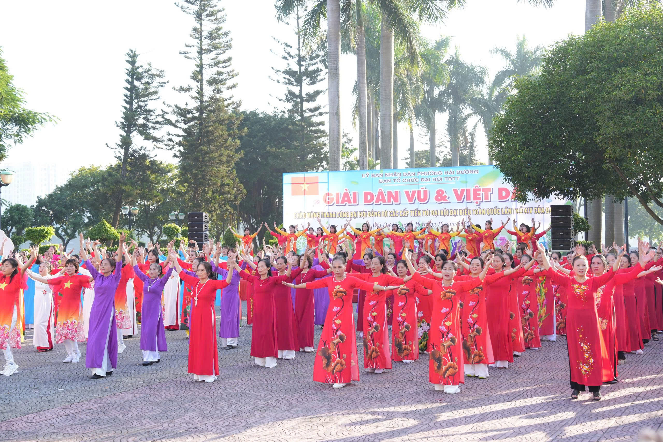 Tại khu vực trung tâm công viên, giải Dân vũ thu hút hơn 200 hội viên và Nhân dân đến từ nhiều tổ dân phố trên địa bàn phường tham gia. Các đội biểu diễn đã mang đến nhiều tiết mục đặc sắc, được dàn dựng công phu xoay quanh chủ đề “Ca ngợi Đảng, Bác Hồ, quê hương, đất nước và tình yêu cuộc sống.” Những bài nhảy khỏe khoắn, trẻ trung, tràn đầy năng lượng đã tạo không khí rộn ràng, gắn kết cộng đồng, lan tỏa phong trào rèn luyện thể thao nghệ thuật quần chúng trong Nhân dân phường Hải Dương.