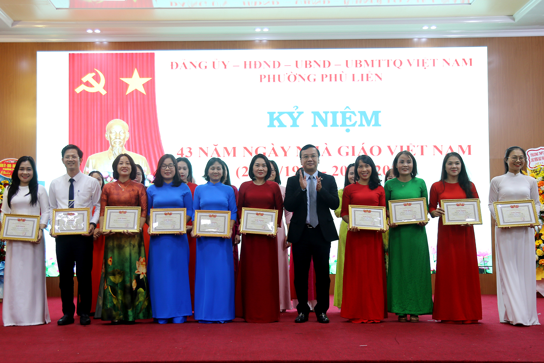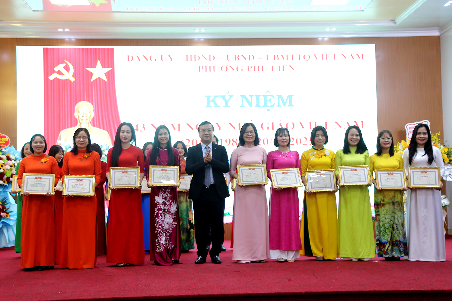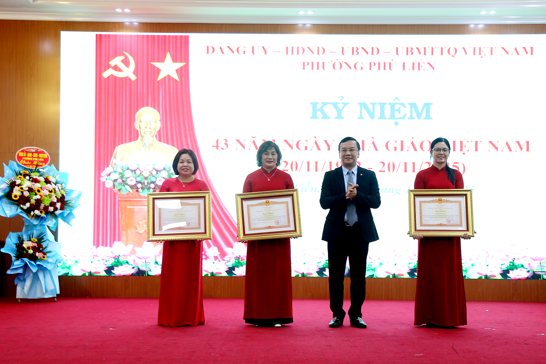 (Haiphong.gov.vn) - Chiều 14/11, UBND phường Phù Liễn long trọng tổ chức kỷ niệm 43 năm ngày Nhà giáo Việt Nam (20/11/1982 – 20/11/2025). Tới dự có các đồng chí: Uông Minh Long – Phó Giám đốc Sở Giáo dục và Đào tạo thành phố; Phí Thị Thùy Vân – Phó Giám đốc Sở Giáo dục và đào tạo thành phố; Phó Giáo sư – Tiến sĩ Nguyễn Thị Hiên – Bí thư Đảng ủy, Chủ tịch Hội đồng trường Đại học Hải Phòng. Về phía lãnh đạo phường có các đồng chí: Bùi Thị Tuyết Mai – Bí thư Đảng ủy, Chủ tịch HĐND phường; Phạm Văn Diện – Chủ tịch UBND phường; Phạm Tiến Thắng - Phó Bí thư Thường trực Đảng ủy phường.\