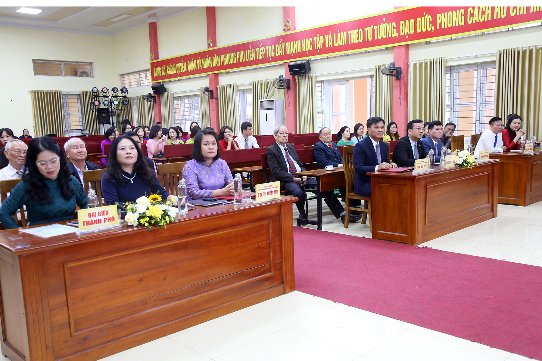 Bí thư Đảng ủy, Chủ tịch HĐND phường Bùi Thị Tuyết Mai phát biểu tại chương trìnhPhát biểu tại chương trình kỷ niệm, đồng chí Bùi Thị Tuyết Mai – Bí thư Đảng ủy, Chủ tịch HĐND phường đánh giá cao tinh thần trách nhiệm, sự tận tụy, tình yêu nghề của các nhà giáo. Nhiều thầy cô giáo dù còn nhiều khó khăn nhưng vẫn nỗ lực trong công việc, không ngừng đổi mới phương pháp giảng dạy, ứng dụng công nghệ, góp phần xây dựng môi trường giáo dục an toàn, thân thiện và hiện đại.
