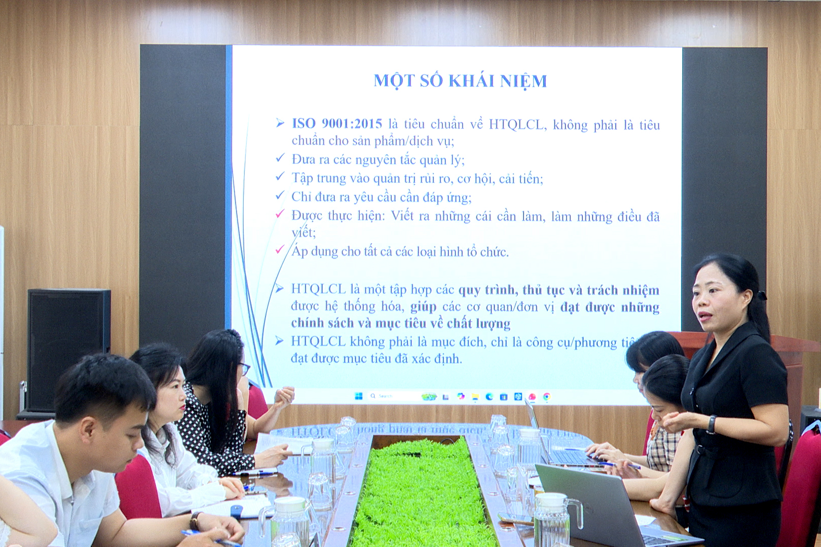 Tại Hội nghị, Phó Chi cục trưởng Chi cục Tiêu chuẩn Đo lường chất lượng, Sở Khoa học và Công nghệ Nguyễn Thị Yến trình bày, trao đổi và chia sẻ những nội dung trọng tâm của tiêu chuẩn ISO 9001:2015 như: nguyên tắc quản lý chất lượng; vai trò, trách nhiệm của từng cán bộ, công chức trong hệ thống quản lý chất lượng; quy trình nhận diện rủi ro, cơ hội, kiểm soát tài liệu, đánh giá nội bộ và xem xét của lãnh đạo; phân tích những thuận lợi, khó khăn trong quá trình thực hiện ISO 9001:2015.