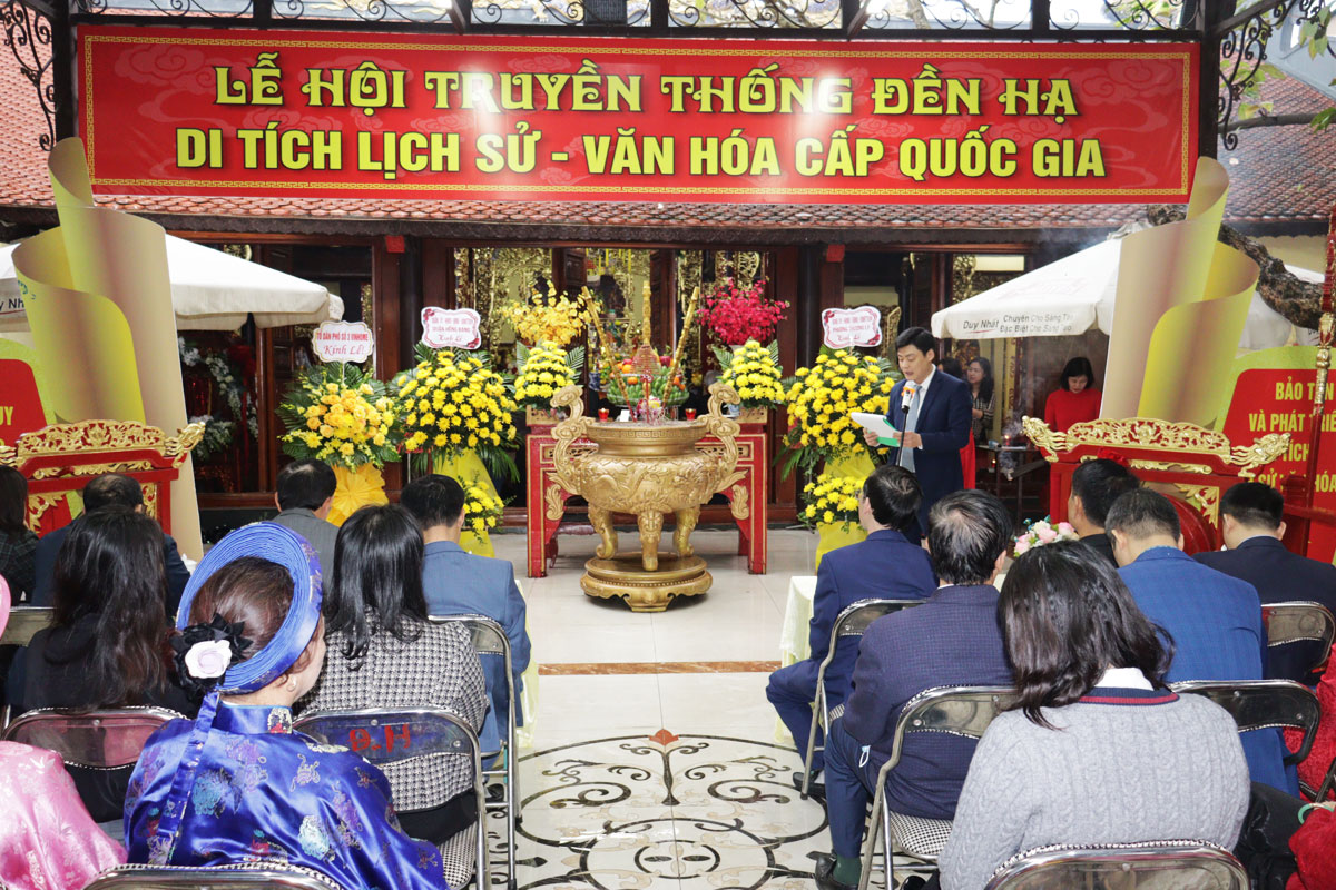 Đồng chí Lưu Trung Mạnh, Chủ tịch UBND phường phát biểu khai mạc Lễ hội.Phát biểu khai mạc Lễ hội, thay mặt Đảng bộ và chính quyền địa phương, đồng chí Lưu Trung Mạnh, Chủ tịch UBND phường bày tỏ sự biết ơn sâu sắc tới các đồng chí lãnh đạo thành phố, quận Hồng Bàng và toàn thể Nhân dân trong và ngoài phường, các cơ quan, đơn vị, các doanh nghiệp, các tổ dân phố thời gian qua đã công đức, góp công, góp của để trùng tu, tôn tạo Di tích Lịch sử - Văn hoá Quốc gia Đền Hạ được bề thế, khang trang như ngày nay. Đồng thời cho biết, thời gian tới, Đền Hạ sẽ tiếp tục cải tạo, nâng cấp để đồng bộ khuôn viên di tích, địa phương rất mong tiếp tục nhận được sự quan tâm, hỗ trợ, ủng hộ, công đức, đóng góp về tinh thần và vật chất để góp phần giữ gìn Di tích Lịch sử - Văn hoá quốc gia Đền Hạ ngày càng khang trang, sạch đẹp hơn nữa, xứng tầm một di tích lịch sử cấp quốc gia đã được Nhà nước phong tặng.