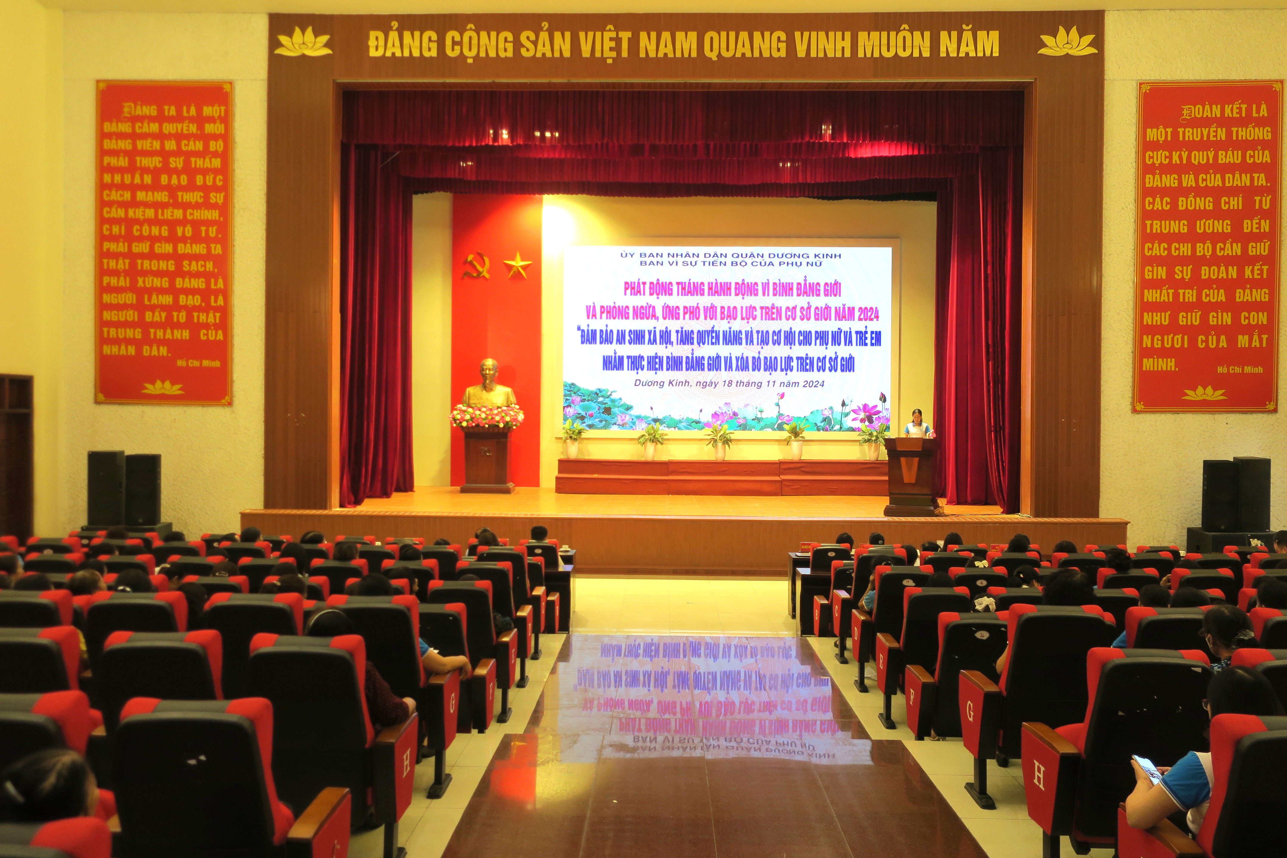 (Haiphong.gov.vn) - Chiều 18/11, UBND quận Dương Kinh tổ chức Hội nghị phát động Tháng hành động vì bình đẳng giới và phòng ngừa, ứng phó với bạo lực trên cơ sở giới năm 2024 và tuyên truyền về bình đẳng giới.