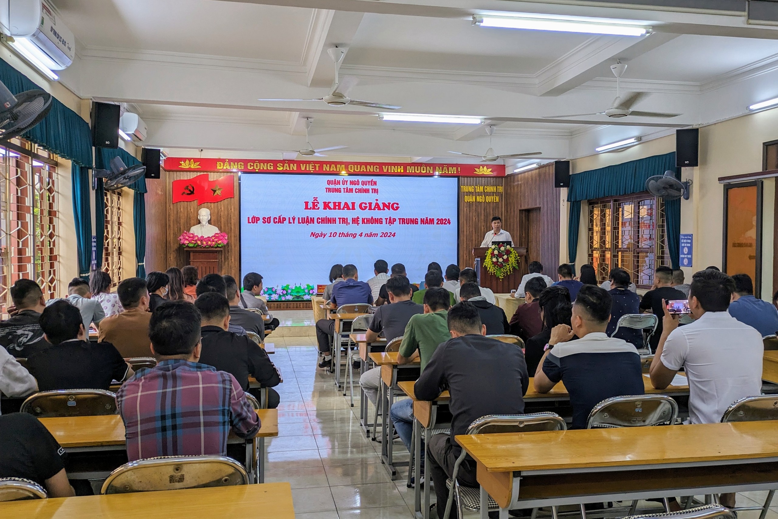 Lễ khai giảng Lớp sơ cấp Lý luận Chính trị hệ không tập trung năm 2024 quận Ngô Quyền.Lớp học nhằm trang bị những kiến thức cơ bản về lý luận chính trị, hình thành thế giới quan khoa học, nhân sinh quan cách mạng và phương pháp luận duy vật biện chứng của chủ nghĩa Mác - Lênin; giúp các học viên hiểu và nắm được những nội dung chủ yếu của tư tưởng Hồ Chí Minh, quan điểm, đường lối cách mạng, sự vận dụng chủ nghĩa Mác-Lênin, tư tưởng Hồ Chí Minh của Đảng Cộng sản Việt Nam trong giai đoạn hiện nay... từ đó, củng cố niềm tin vào mục tiêu, lý tưởng của Đảng, của Cách mạng, nâng cao bản lĩnh chính trị, phẩm chất đạo đức, trình độ lãnh đạo, quản lý, kỹ năng tổ chức thực hiện nhiệm vụ được Đảng, Nhà nước và Nhân dân giao phó.