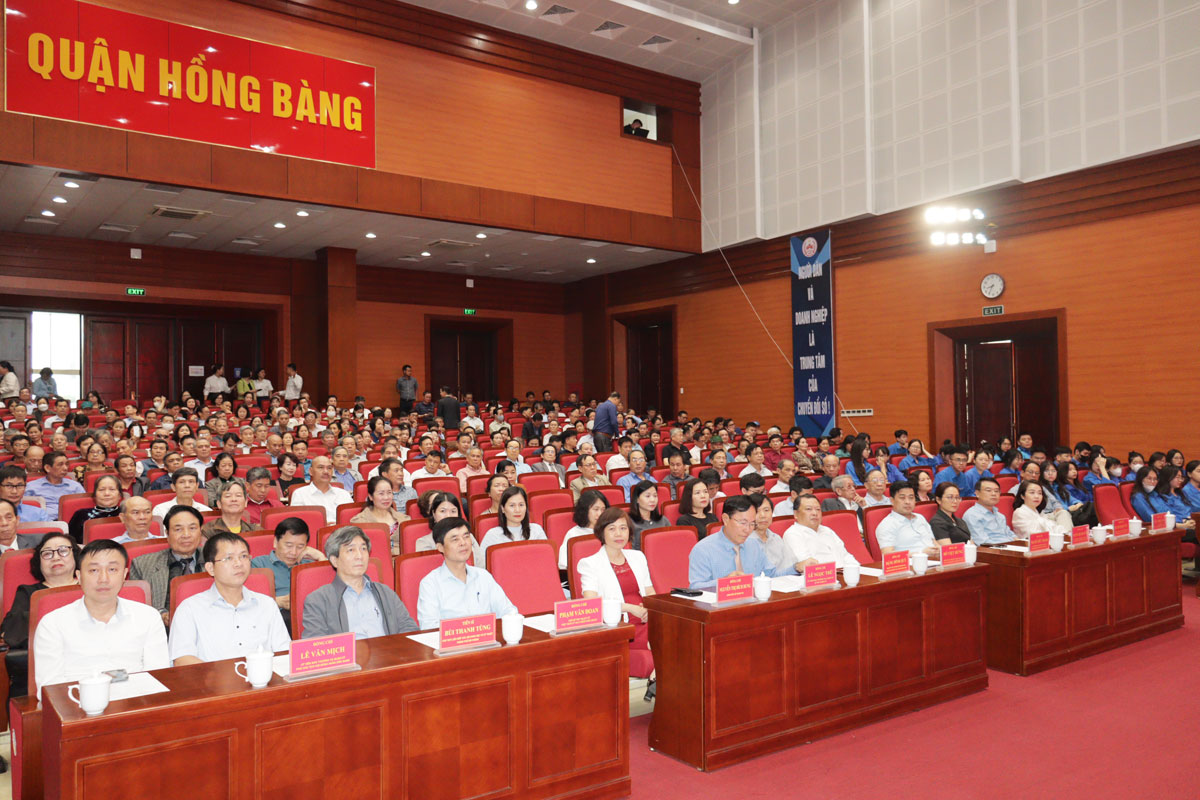 Các đại biểu dự Hội nghị.Đồng chí Bí thư Quận ủy đề nghị thời gian tới, tuổi trẻ quận Hồng Bàng tiếp tục phát huy truyền thống anh hùng cách mạng, tinh thần xung kích, tình nguyện, nỗ lực phấn đấu, rèn luyện, hoàn thành toàn diện các nhiệm vụ được giao. Trong đó, chú trọng tập trung cao triển khai các chương trình, hoạt động bám sát nhiệm vụ chính trị của quận, nhất là các nhiệm vụ đòi hỏi vai trò tiên phong, xung kích tình nguyện của thế hệ trẻ như: đổi mới sáng tạo, khởi nghiệp, chuyển đổi số, xây dựng chính quyền điện tử, đô thị thông minh; phát triển kinh tế - xã hội; tham gia giải quyết các vấn đề phức tạp, bức xúc của địa phương...