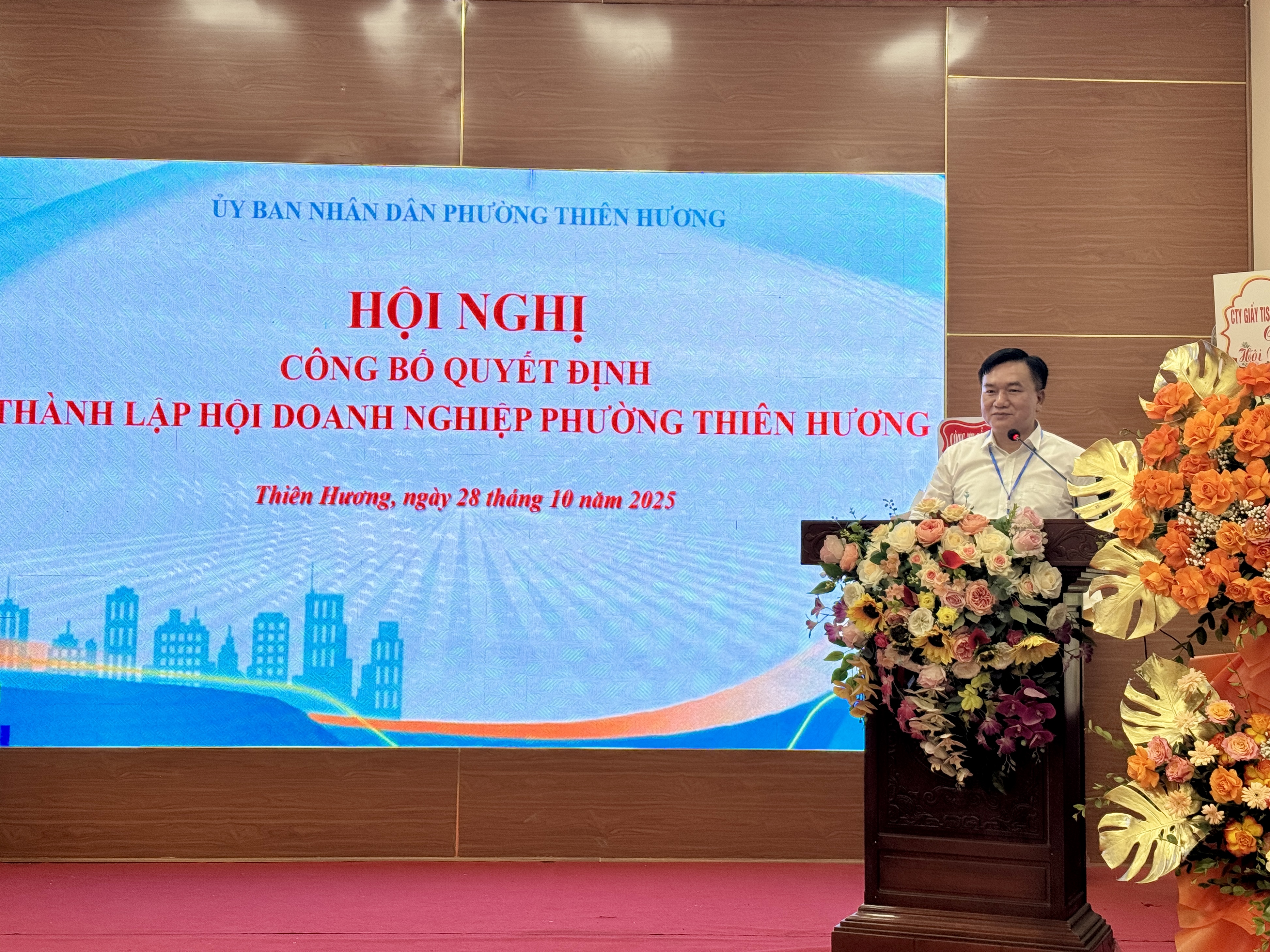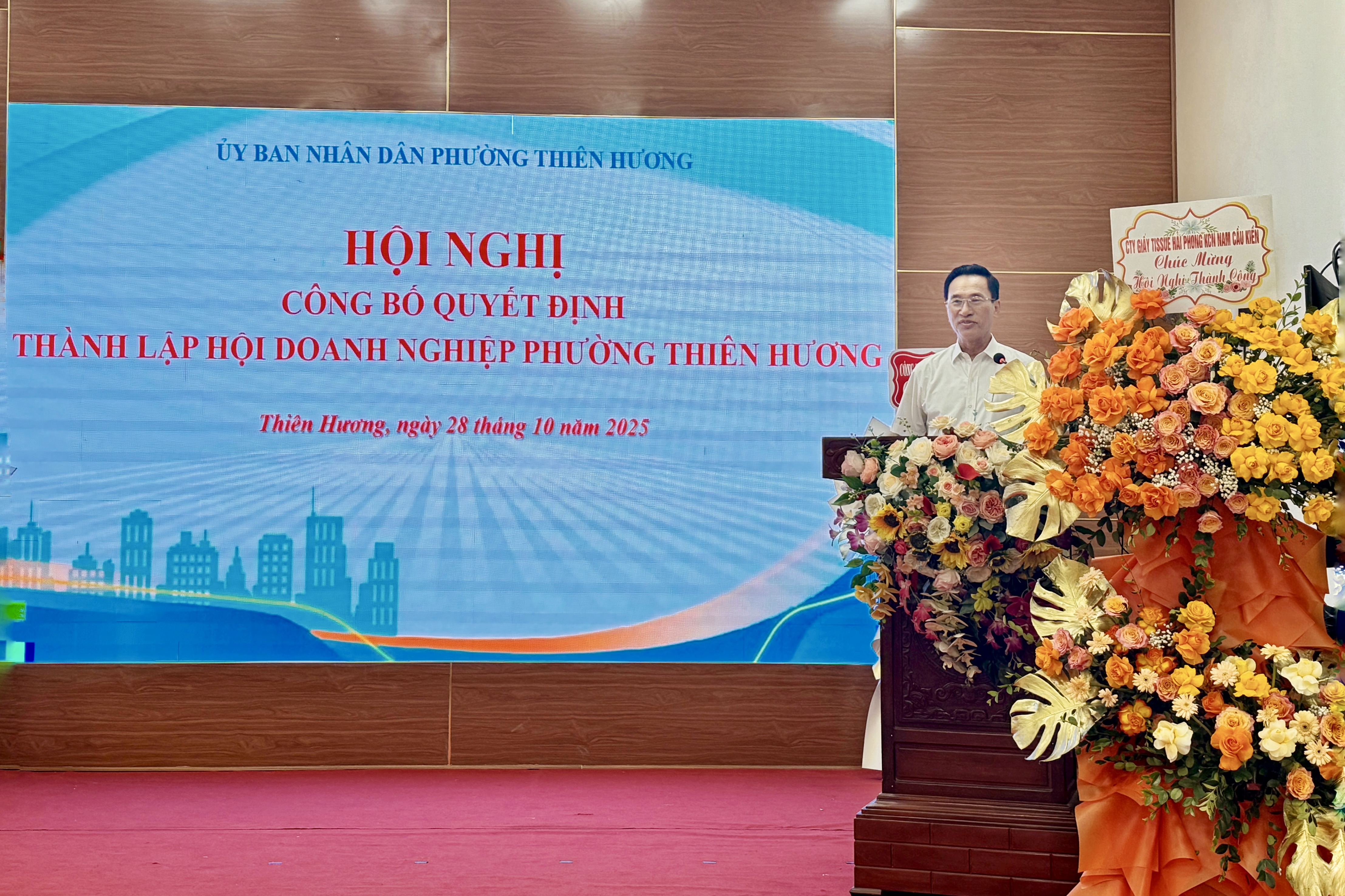 Chủ tịch Hội doanh nghiệp phường Thiên Hương Nguyễn Sỹ Tình phát biểu tại hội nghị.Phát biểu tại hội nghị, đại diện Ban Chấp hành lâm thời - Chủ tịch Hội doanh nghiệp phường Thiên Hương Nguyễn Sỹ Tình bày tỏ lòng biết ơn tới sự quan tâm, chỉ đạo sát sao của Đảng ủy, UBND phường Thiên Hương và sự hỗ trợ của các phòng, đơn vị chuyên môn đã tạo điều kiện thuận lợi để Hội chính thức được thành lập. Sự ra đời của Hội Doanh nghiệp phường đánh dấu bước phát triển quan trọng trong việc tập hợp, đoàn kết đội ngũ doanh nhân, góp phần khẳng định vai trò của kinh tế tư nhân trong sự phát triển chung của địa phương – cụ thể hóa tinh thần Nghị quyết số 68-NQ/TW của Bộ Chính trị về phát triển mạnh mẽ kinh tế tư nhân.